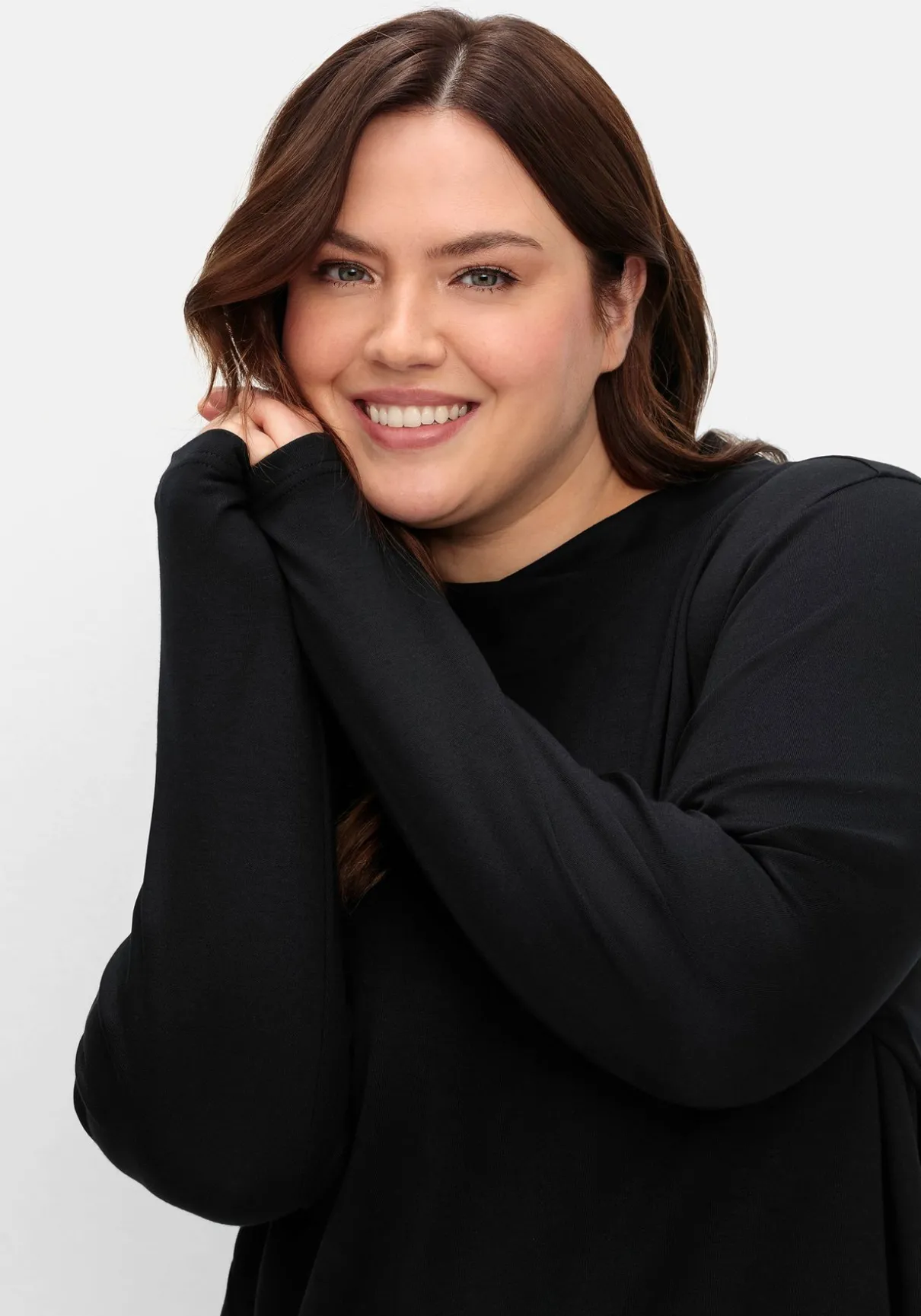 In bequemer A-Linie. Der Saum ist hinten länger als vorn und fällt so schmeichelnd über Po und Hüfte.