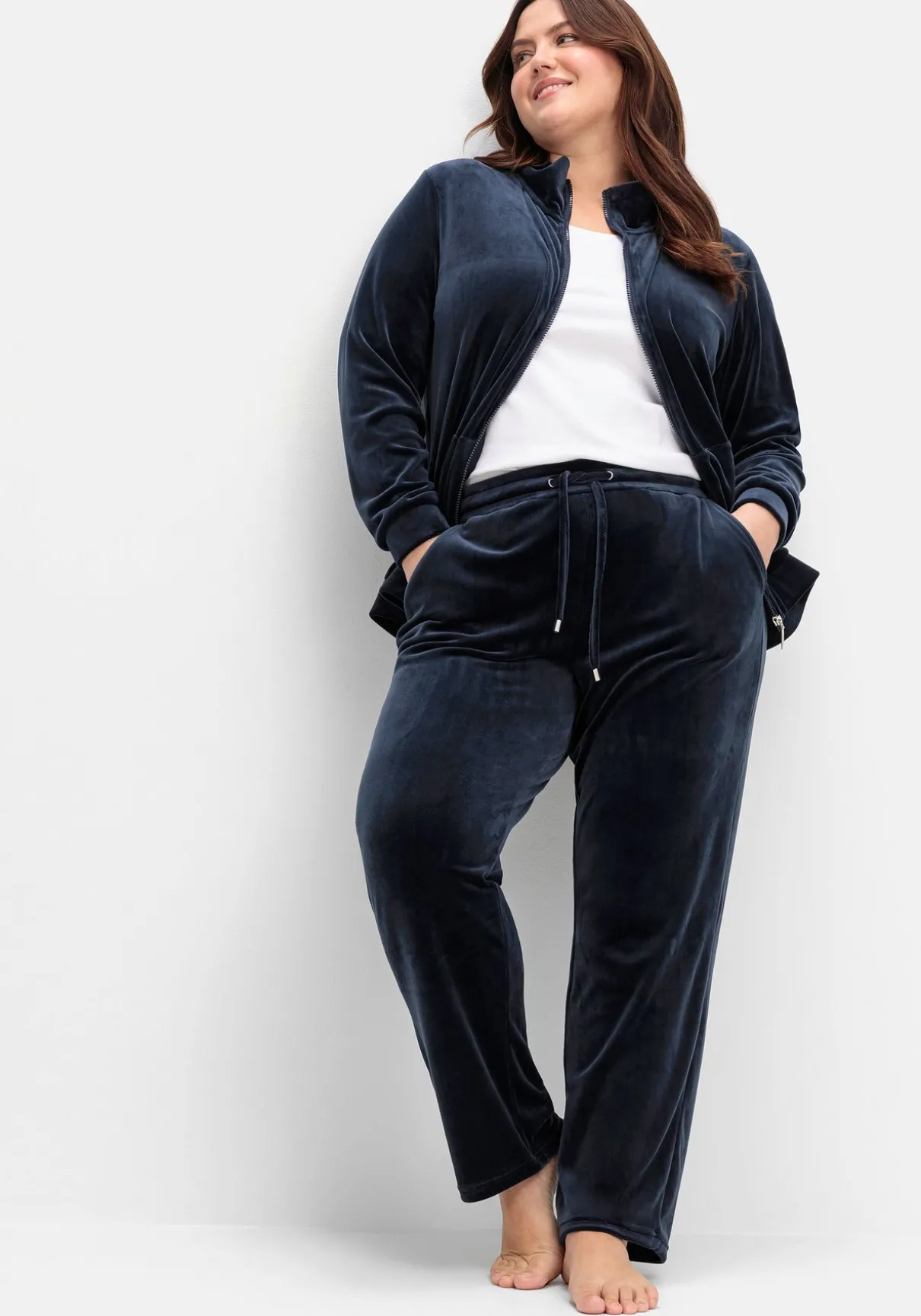 Gemütlicher Loungeanzug aus Jacke und Hose. Dieser herrlich weiche Nickianzug ist die perfekte Wahl für gemütliche Stunden daheim. Die Jacke verfügt über einen Reißverschluss, eine Kängurutasche sowie einen schlichten Stehkragen. Die Schlupfhose bietet mit ihrem geraden Schnitt viel Bequemlichkeit und ist mit einem regulierbaren Bindeband sowie seitlichen Taschen für zusätzlichen Komfort ausgestattet.