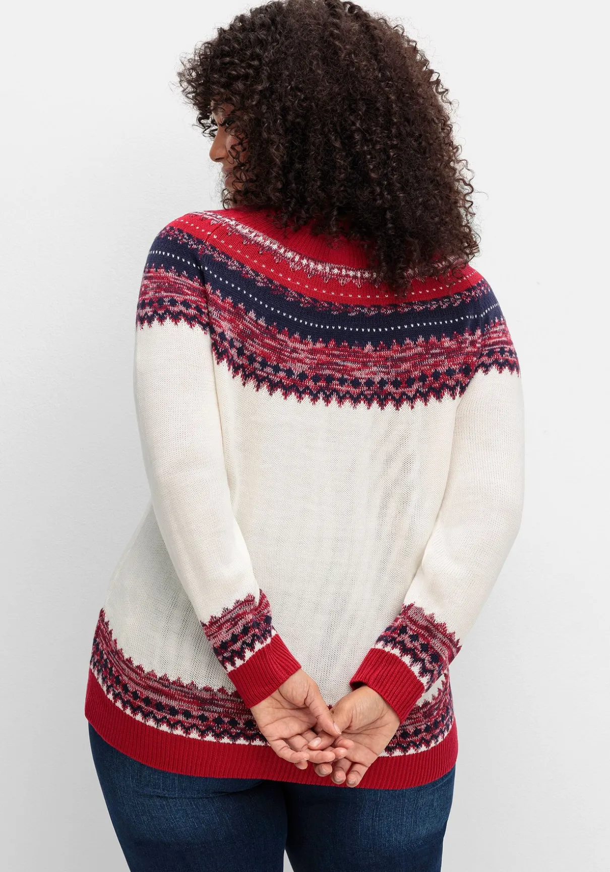 Der Pullover ist im Jacquardstrick gearbeitet und angenehm pflegeleicht.