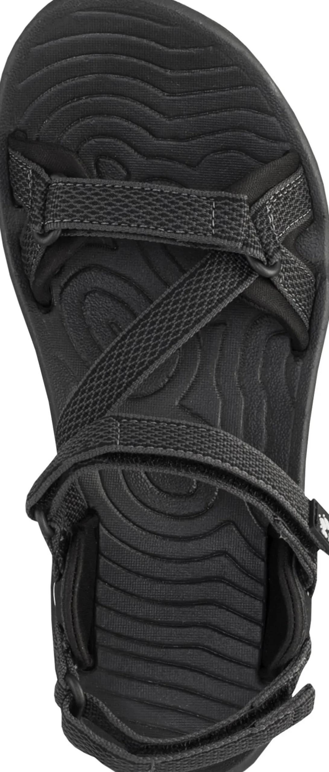 Effizienter, weiter und mit noch mehr Freude geht's mit den Outdoorsandalen von Jack Wolfskin zur nächsten Tour. Der Schuh hat einen niedrigen Schaft und eine offene Spitze sowie einen Klettverschluss. Damit ist er ganz schnell und einfach an- und ausgezogen. Die Outdoorsandale ist besonders für das Wandern geeignet. Diese Outdoorsandale hat eine EVA-Zwischensohle, die aus leichtem und gut dämpfendem Kunststoffschaum besteht. Sie soll für eine gleichmäßige Verteilung der Aufprallkraft auf den gesamten Fuß sorgen und dadurch ein sanftes Gehen und Laufen ermöglichen. Die leicht profilierte Sohle sorgt für einen etwas sichereren Tritt. Das Obermaterial aus Textil ist kaum schmutzempfindlich, leicht und strapazierfähig. Getragen mit bequemen Cargo-Shorts und einem atmungsaktiven Shirt steht einer aufregenden Zeit in der Natur nichts mehr im Weg.