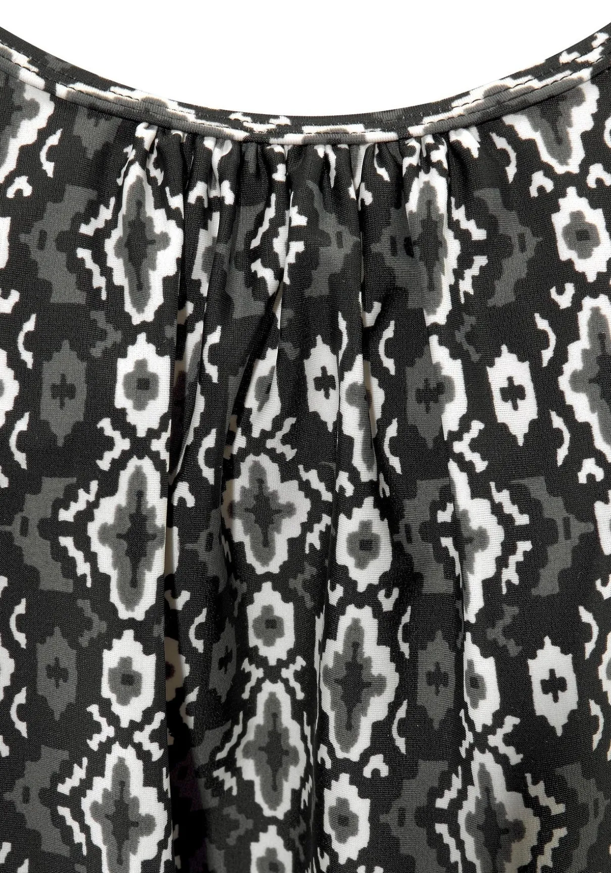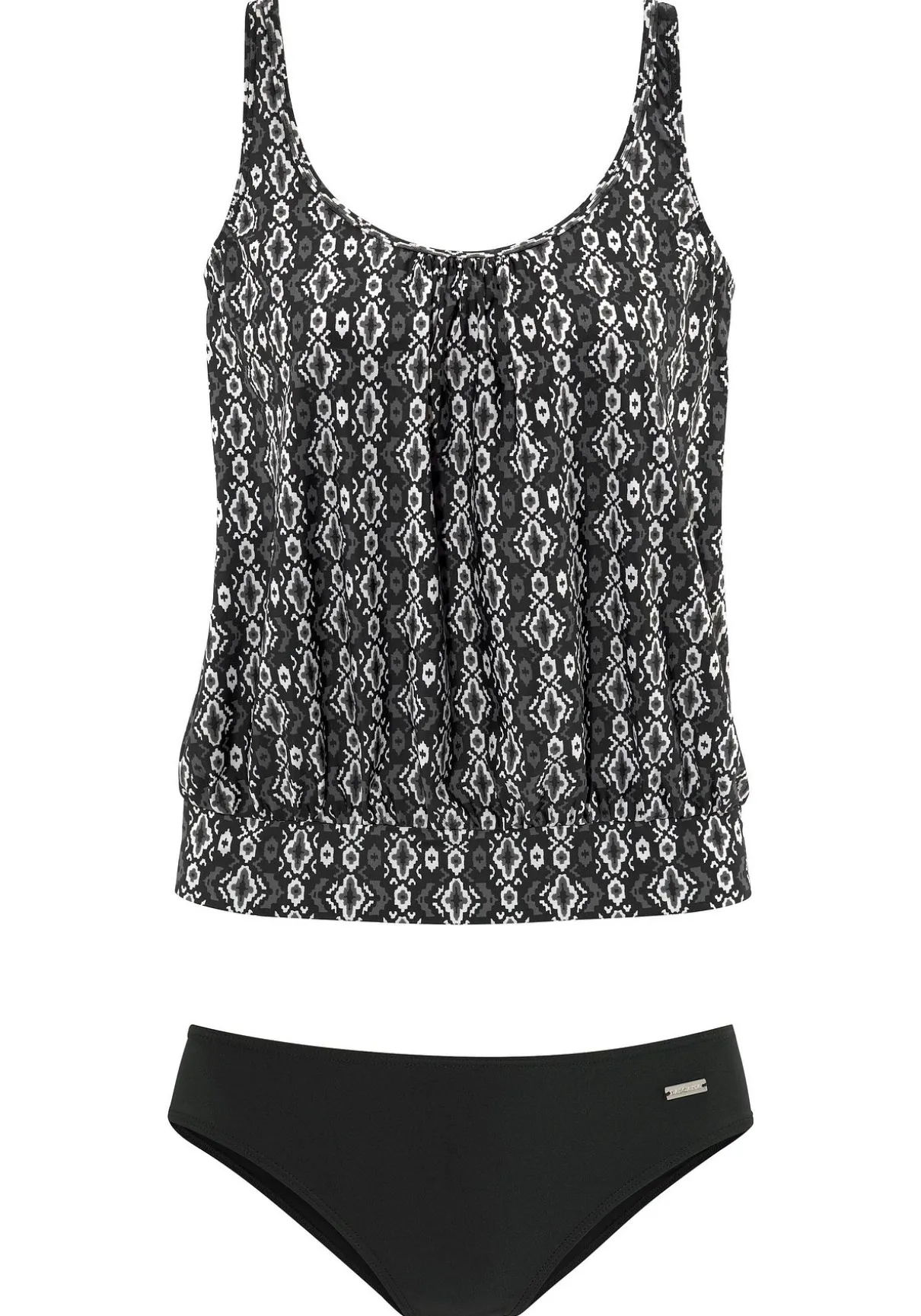 Bademoden von LASCANA im aktuellen Design. Figurfreundliches Top in aktueller Oversize Form: etwas weiterer, bauchbedeckender Schnitt mit eng anliegendem Abschluss. Eingearbeitete Softcups und Unterbrustgummi rundum. Miedereinsatz im Brustbereich und oberen Rücken. Verstellbare Träger. Bis D-Cup geeignet. Hose vorn gefüttert.