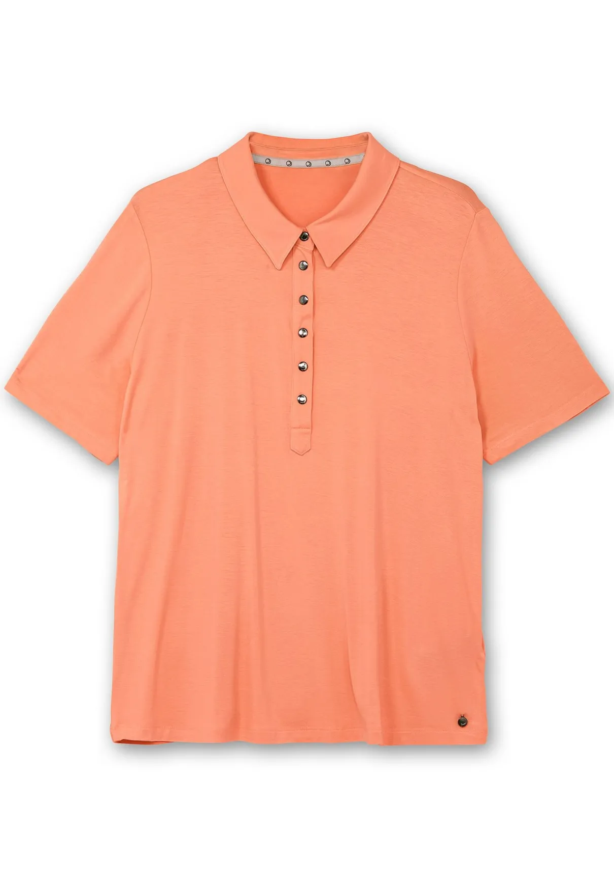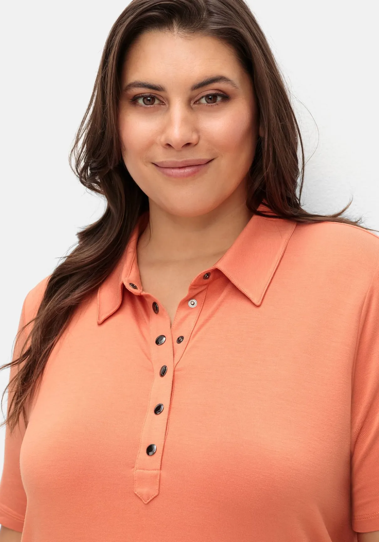 Kurzärmliges Poloshirt mit Hemdkragen und kurzer Knopfleiste von CREATION L PREMIUM. Für ein besonderes Highlight sorgen die glänzenden und mit Logo versehenen Metall-Druckknöpfe. Das Oberteil beeindruckt außerdem mit seiner sportiven Ausstrahlung und dem leichten, eleganten Schimmer.