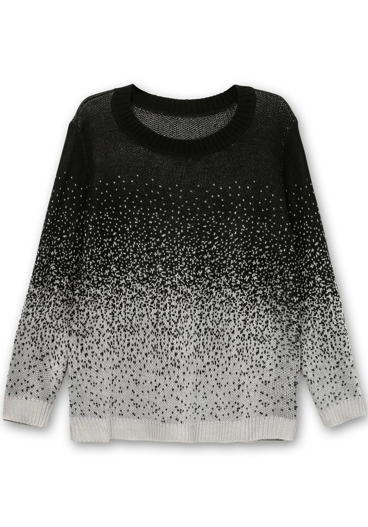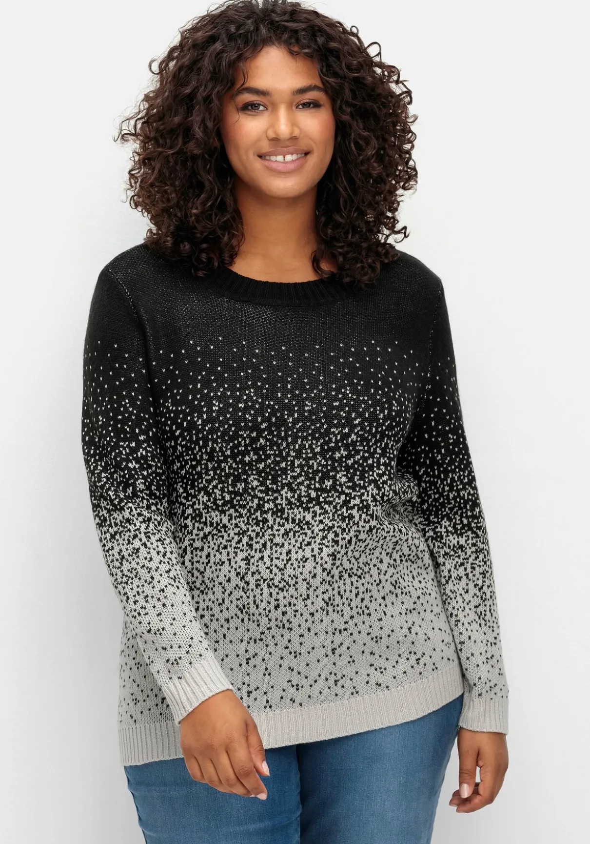 Pullover im modischen Jacquardstrick und mit geripptem Rundhalsausschnitt. Der Farbverlauf macht den Pullover zum Hingucker und wird durch die markanten Rippstrickbündchen an Arm und Saum zusätzlich betont.