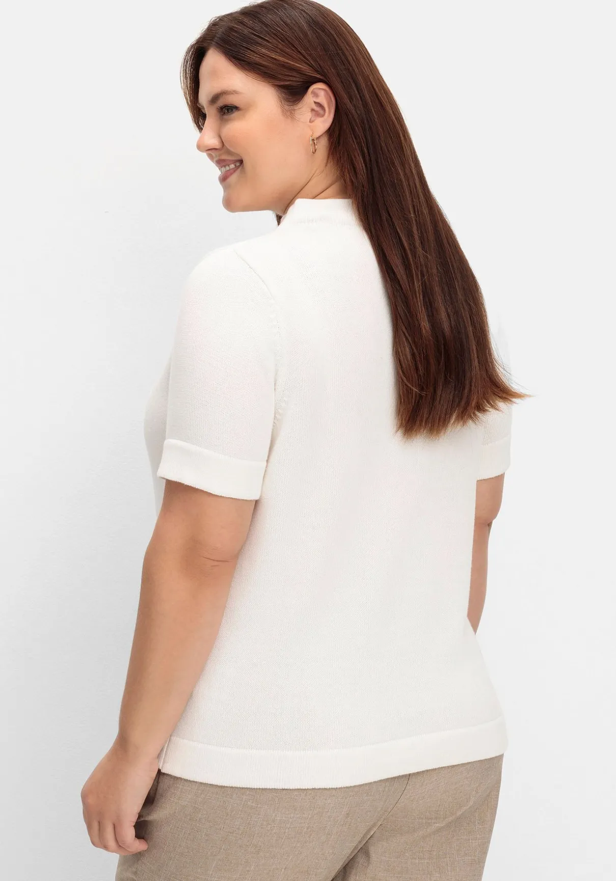 Pullover mit verlängertem Halbarm. Durch den Stehkragen erhält der Kurzarmpullover eine zeitlos-klassische Optik. Auch die doppelt gelegten, glatt verarbeiteten Abschlüsse an Ärmel und Saum unterstreichen den gepflegten Auftritt.