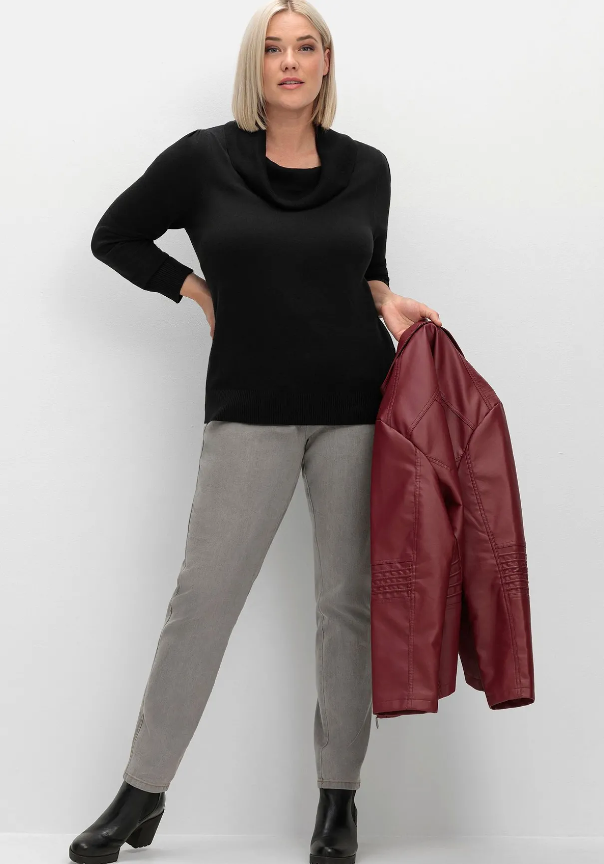 Pullover mit Rollkragen. Der sehr weite, halsferne Kragen lässt eine raffinierte Wasserfall-Optik entstehen. Kräuselungen an den Ärmeln sind dazu eine verspielte Ergänzung. Elastische Rippbündchen an Ärmeln und Saum runden den zeitlos-gepflegten Style perfekt ab.