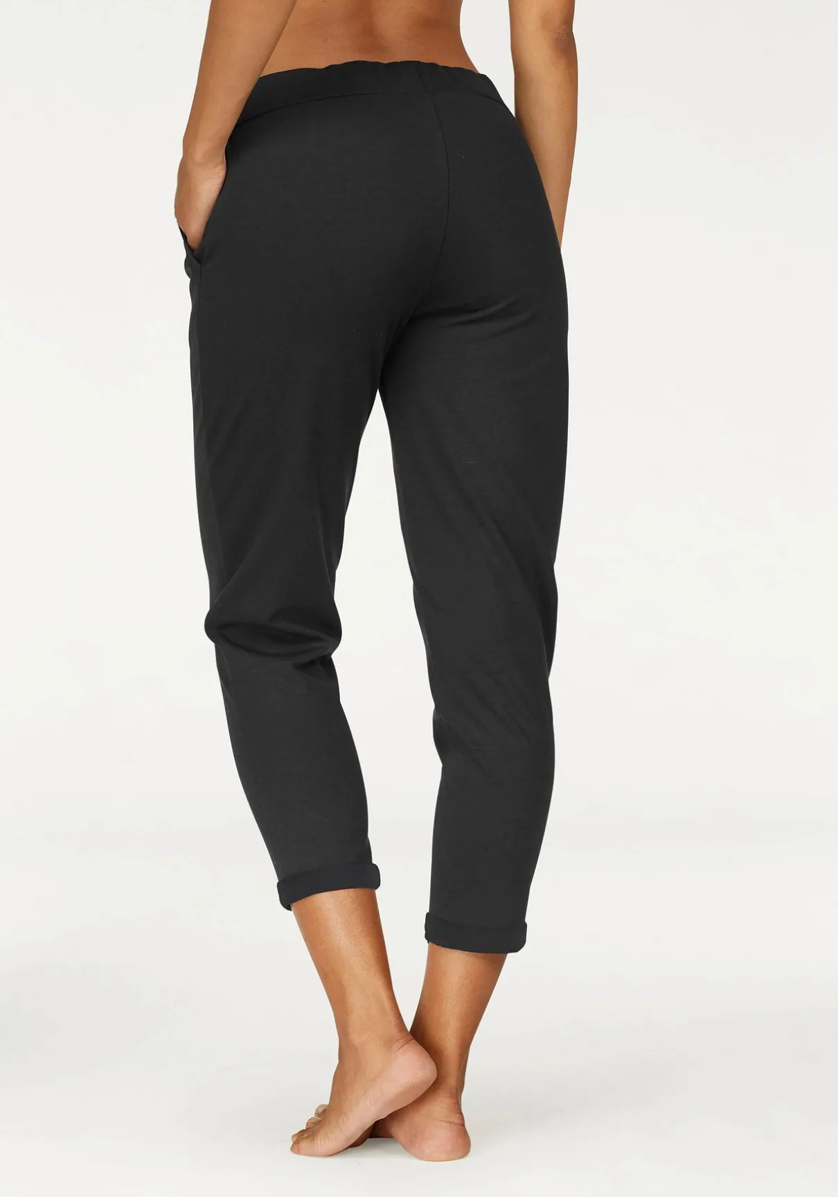 Relaxhose von Lascana in 7/8-Länge, angenehmer, breiter Bund mit verstellbarem Tunnelzug, leger und leicht figurbetont geschnitten. Aus 60% Baumwolle (unterstützt Cotton made in Africa), 35% Polyester, 5% Elasthan.