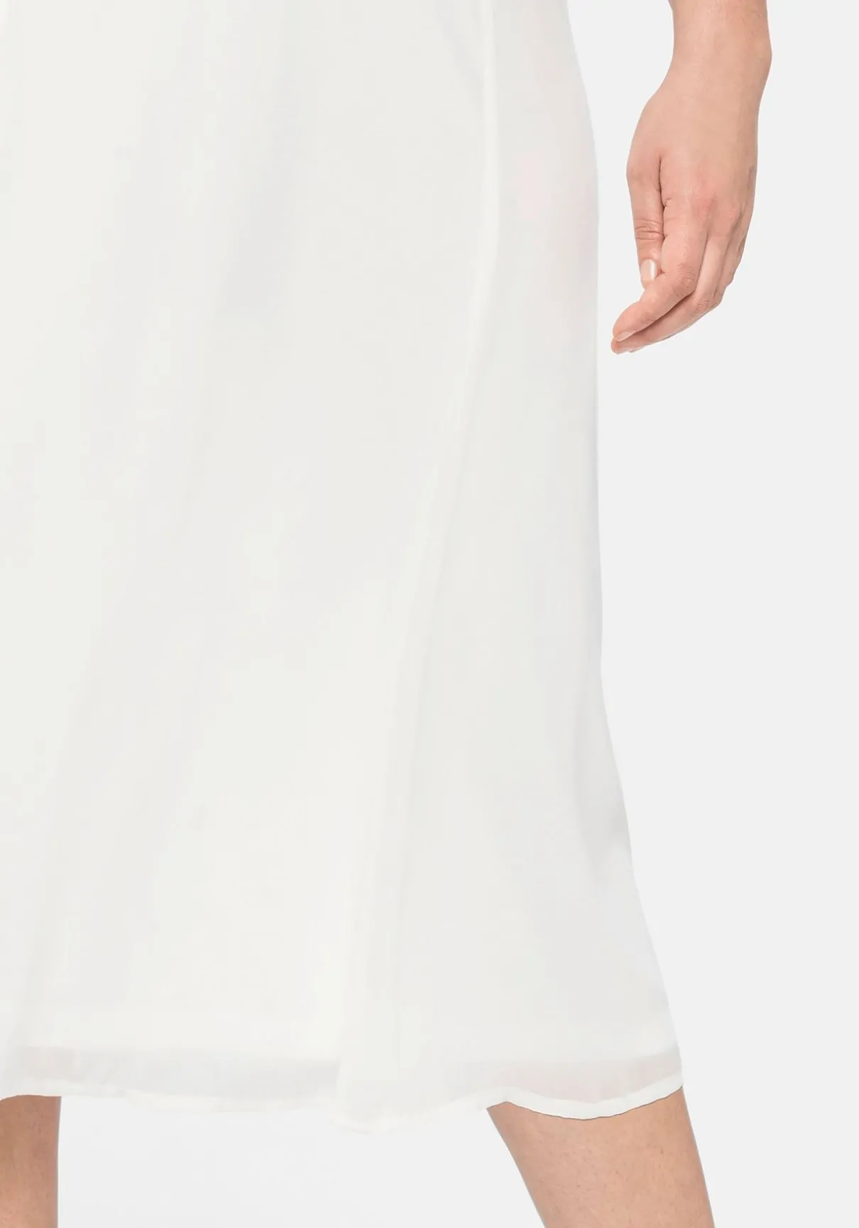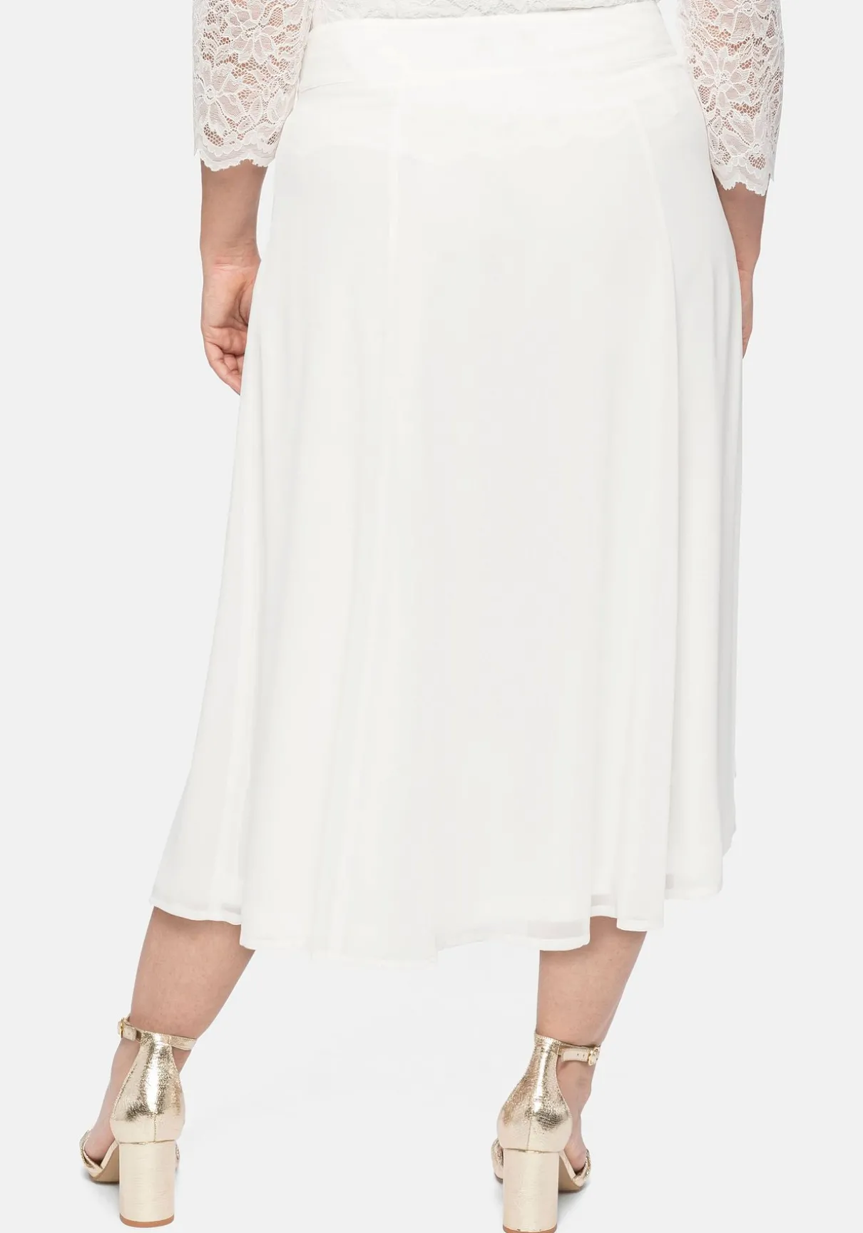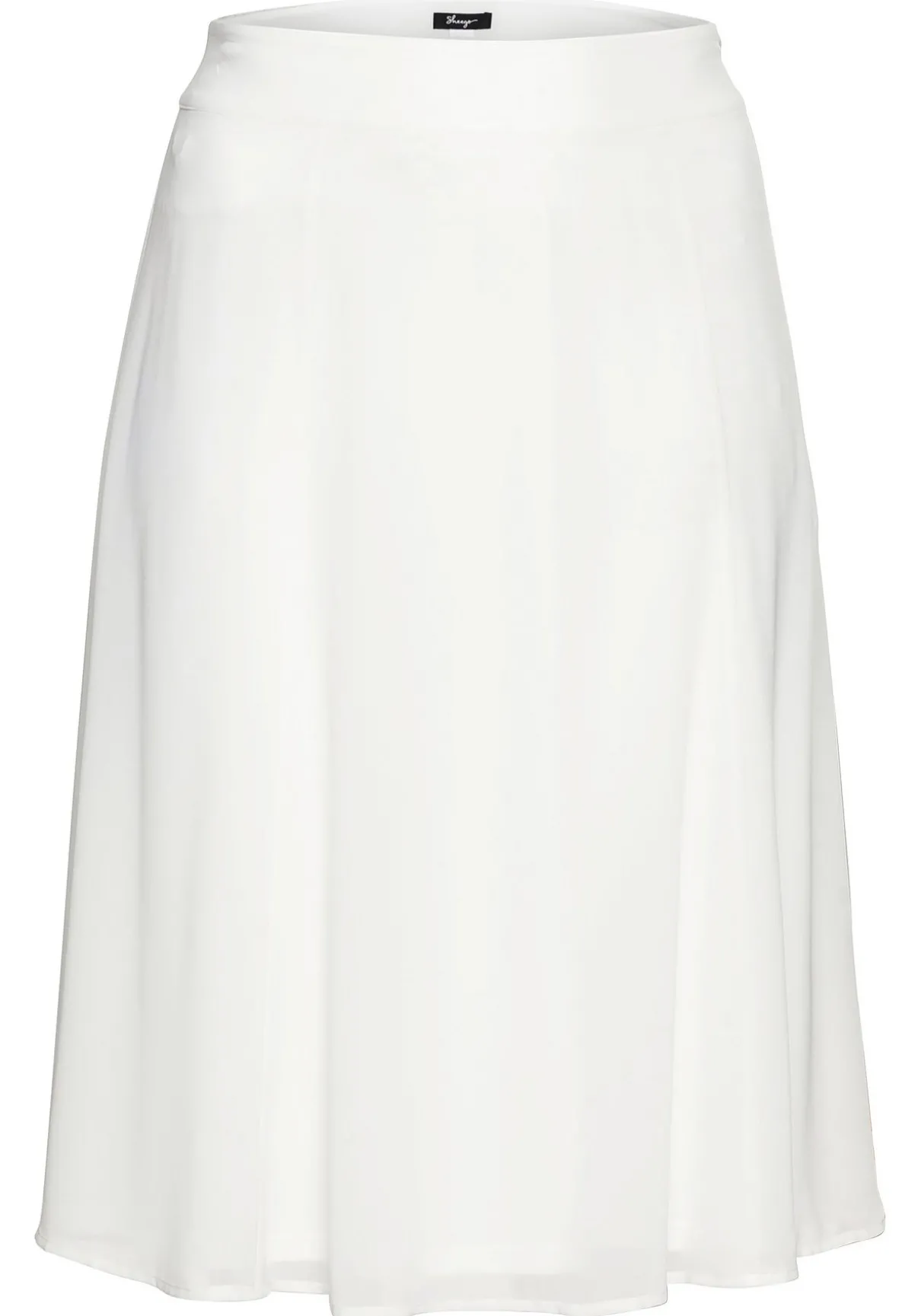 Ob chic mit Heels und Bluse oder trendig mit Sneakers und schlichtem T-Shirt: Dieser Rock passt zu vielen Gelegenheiten. Die weit schwingende, nach unten ausgestellte Form und die zarte Chiffon-Qualität sorgen für femininen Appeal. Der Formbund rückt die Taille in den Blickpunkt und definiert die Silhouette. Mit seitlichem, nahtfeinem Reißverschluss.