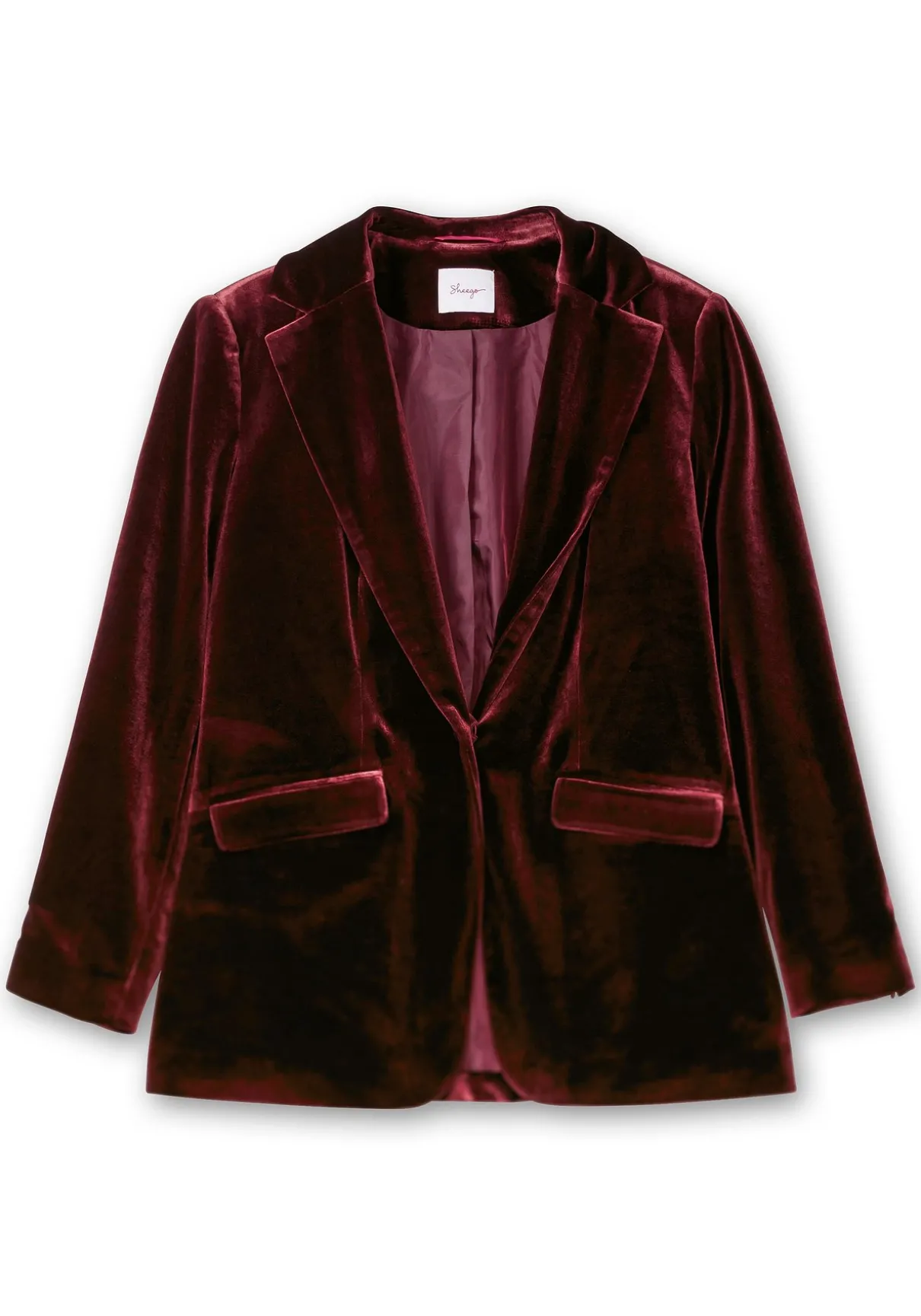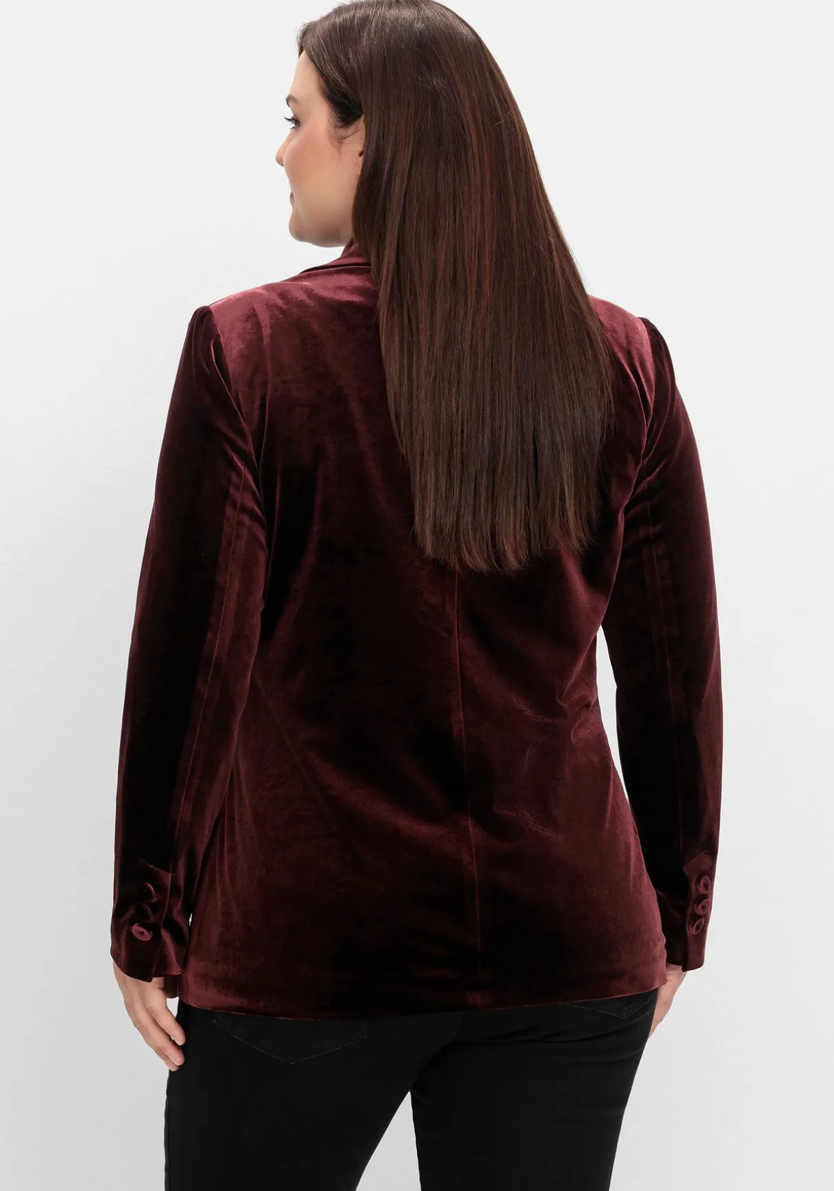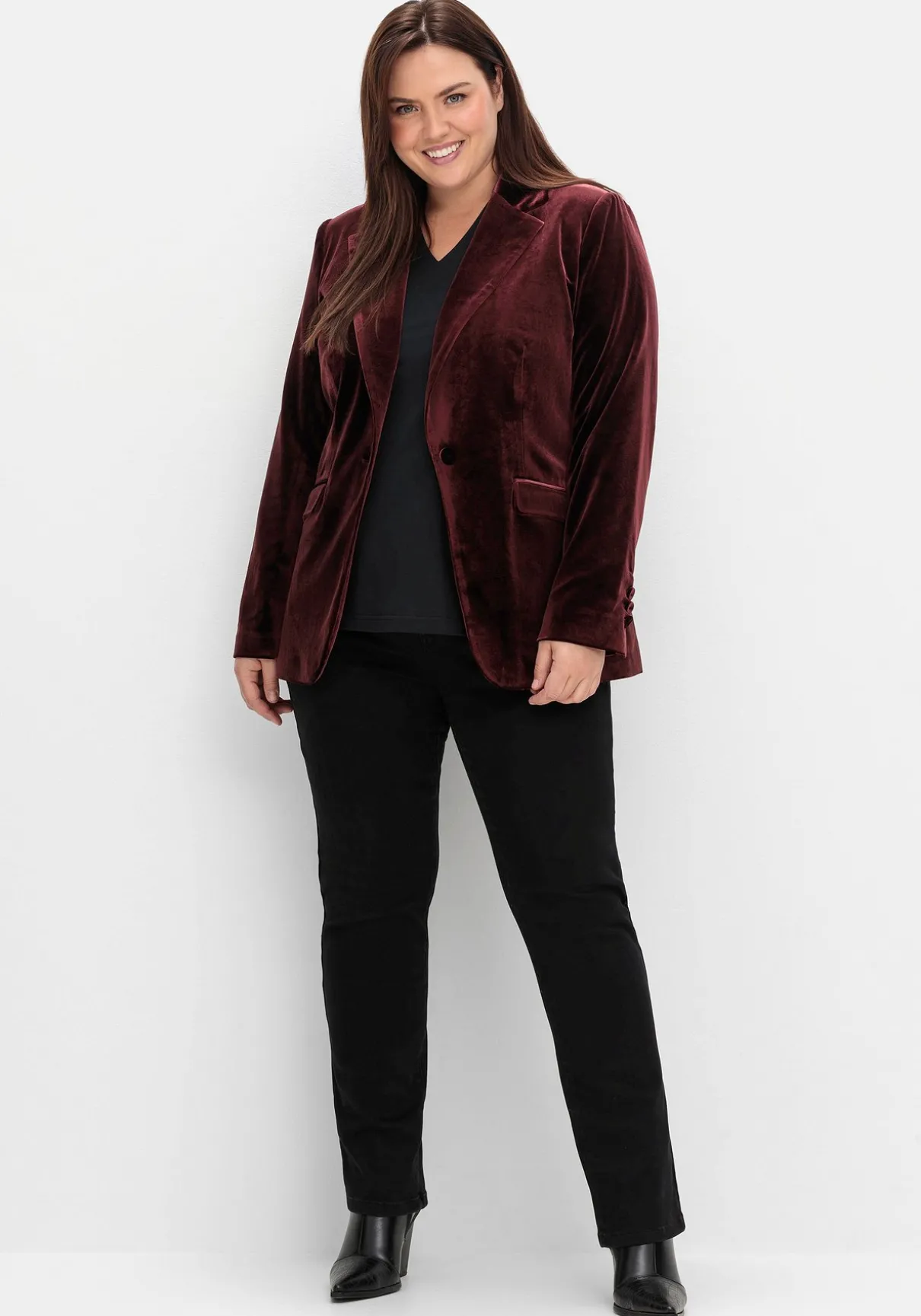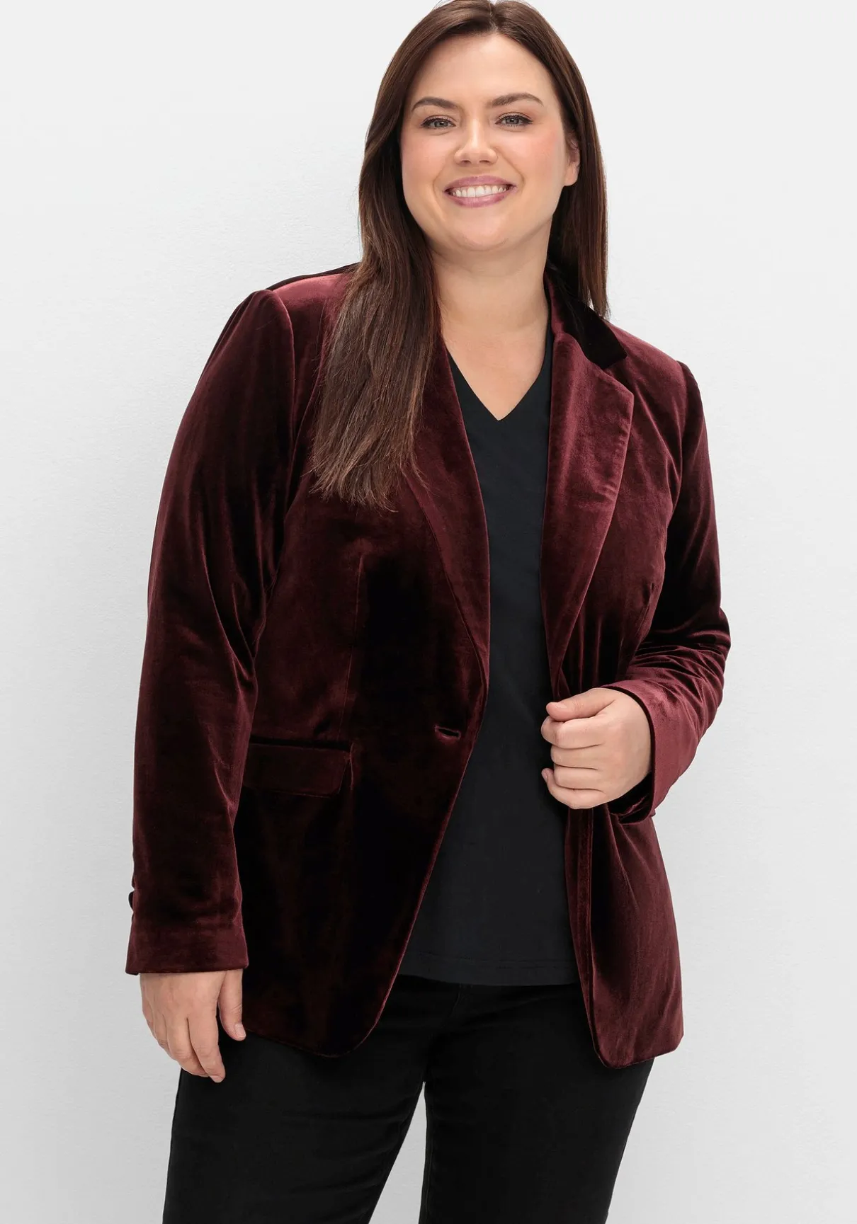 Blazer in Samt-Qualität. Der modisch-elegante Style zeigt sich mit klassischem 1-Knopf-Verschluss, zwei Pattentaschen und streckendem Reverskragen. Der schimmernde Samt wirkt stylisch und festlich zugleich, liebevolles Detail sind die stoffbezogenen Knöpfe.