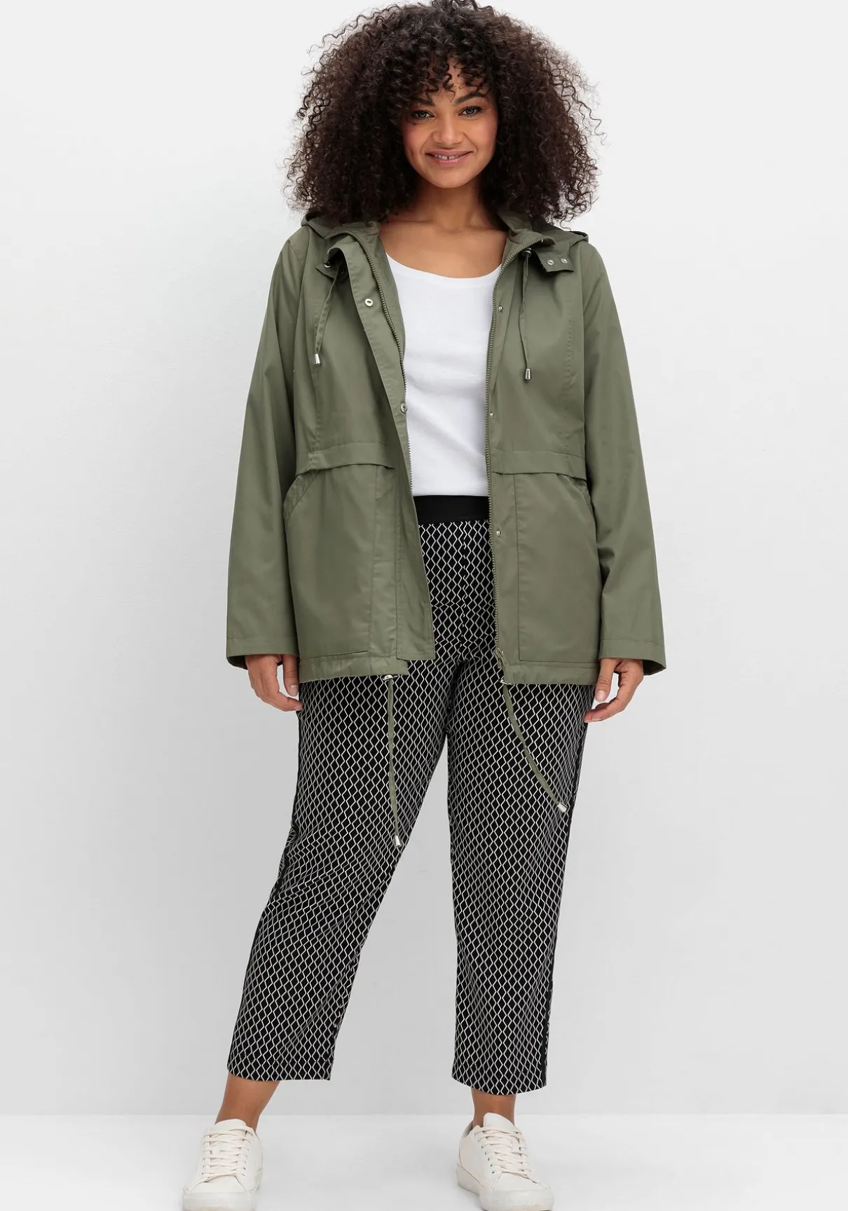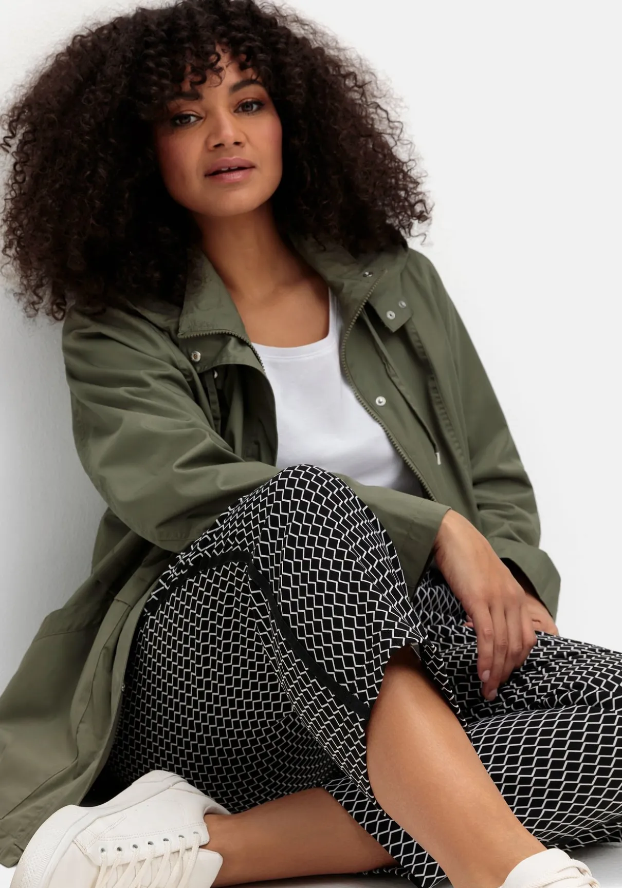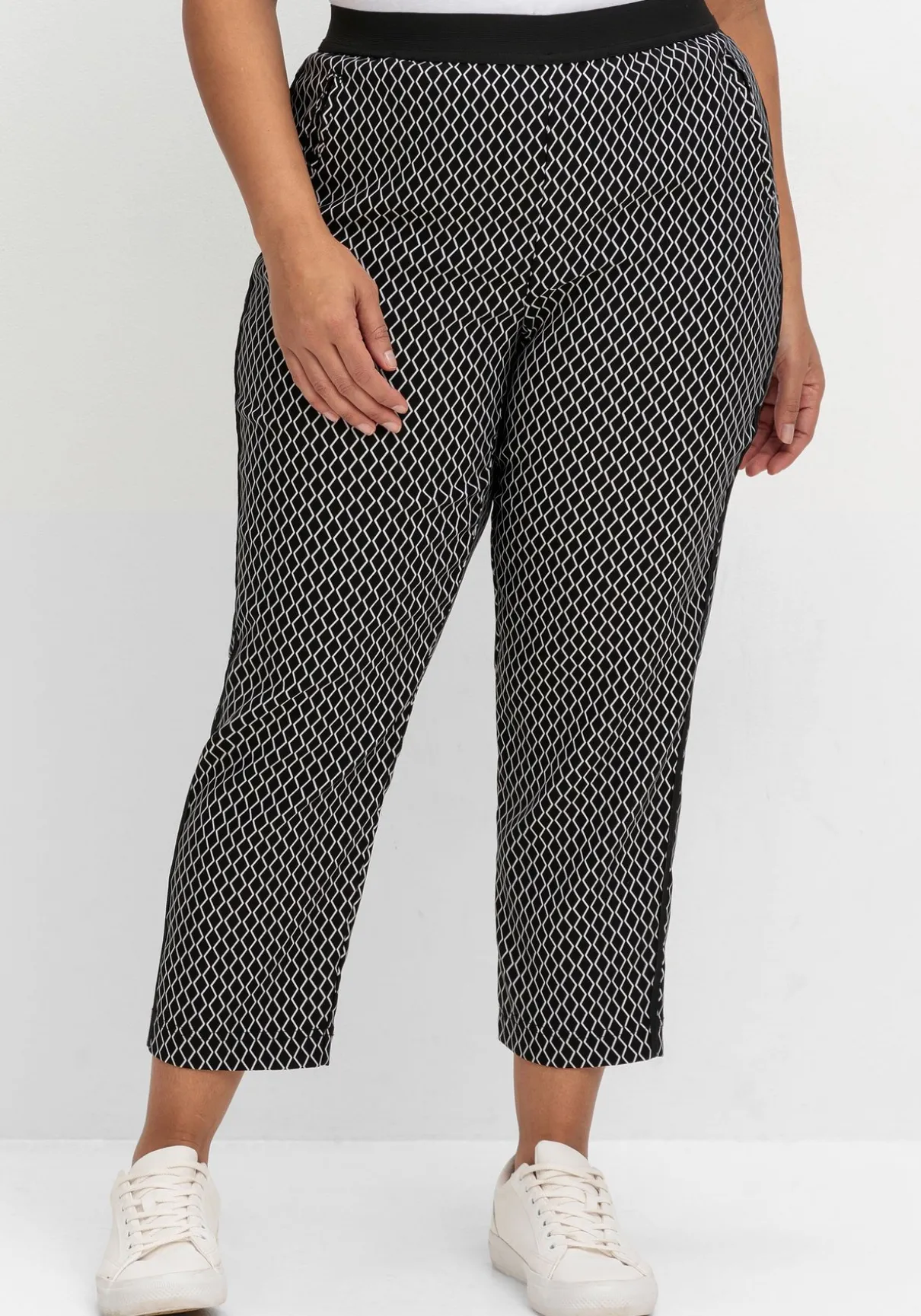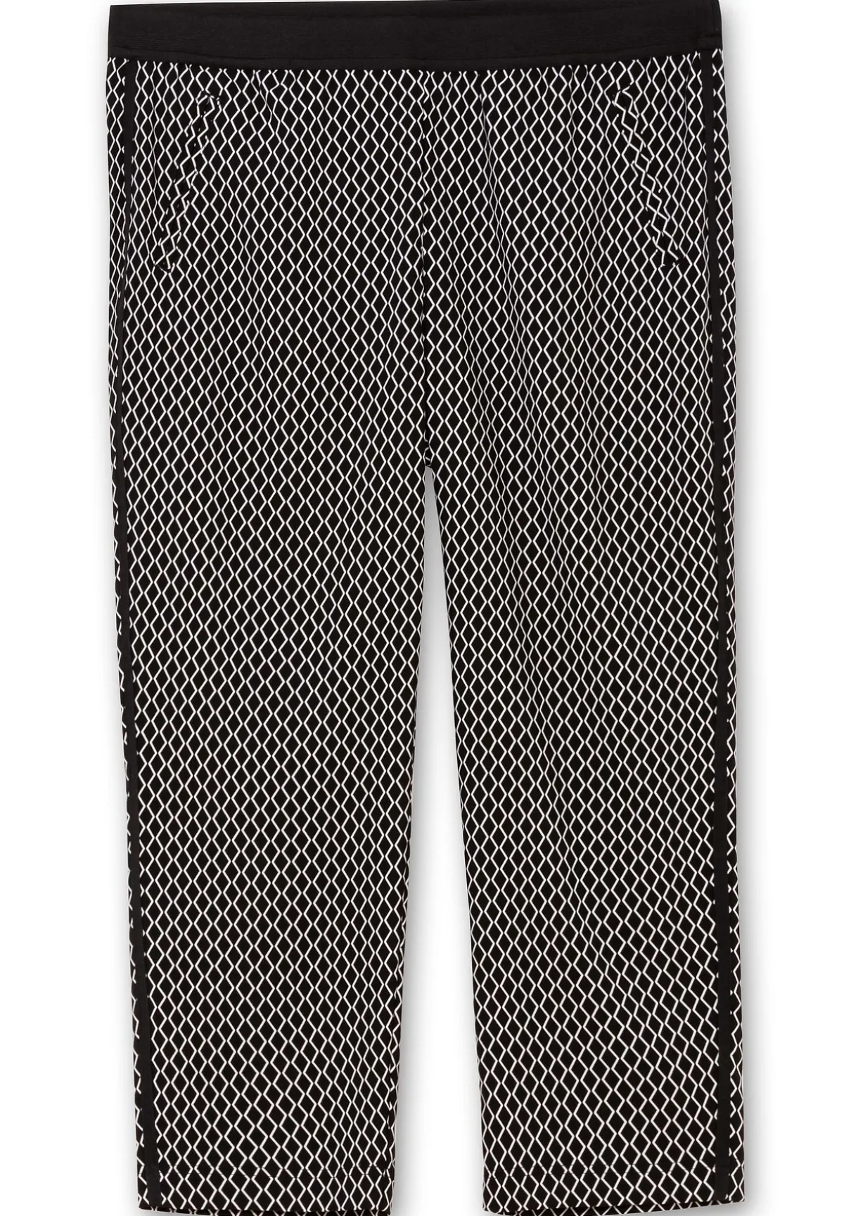 Bengalinhose in 7/8-Länge. Der grafische Rautenprint wird durch einen seitlichen Zierstreifen ergänzt, der geschickt die Beine streckt. Auch der bequeme Gummizugbund in der Taille setzt sich kontraststark ab. Praktische Paspeltaschen ergänzen den Look.