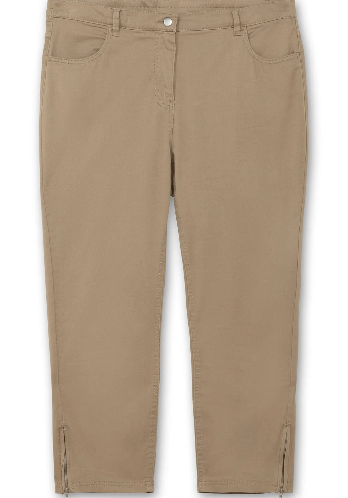 Schmale Jeans in 7/8-Länge, für die Figur mit viel Bauch und schmalen Beinen. Eine legere Note erhält sie dank der dezenten Used-Effekte und der Reißverschlüsse seitlich am Hosensaum. Für Bequemlichkeit sorgt der rückwertige Dehnbund, geschlossen wird die Hose mit Knopf- und Reißverschluss. Gürtelschlaufen am Bund sowie zwei Eingrifftaschen vorn runden den Look gepflegt ab.