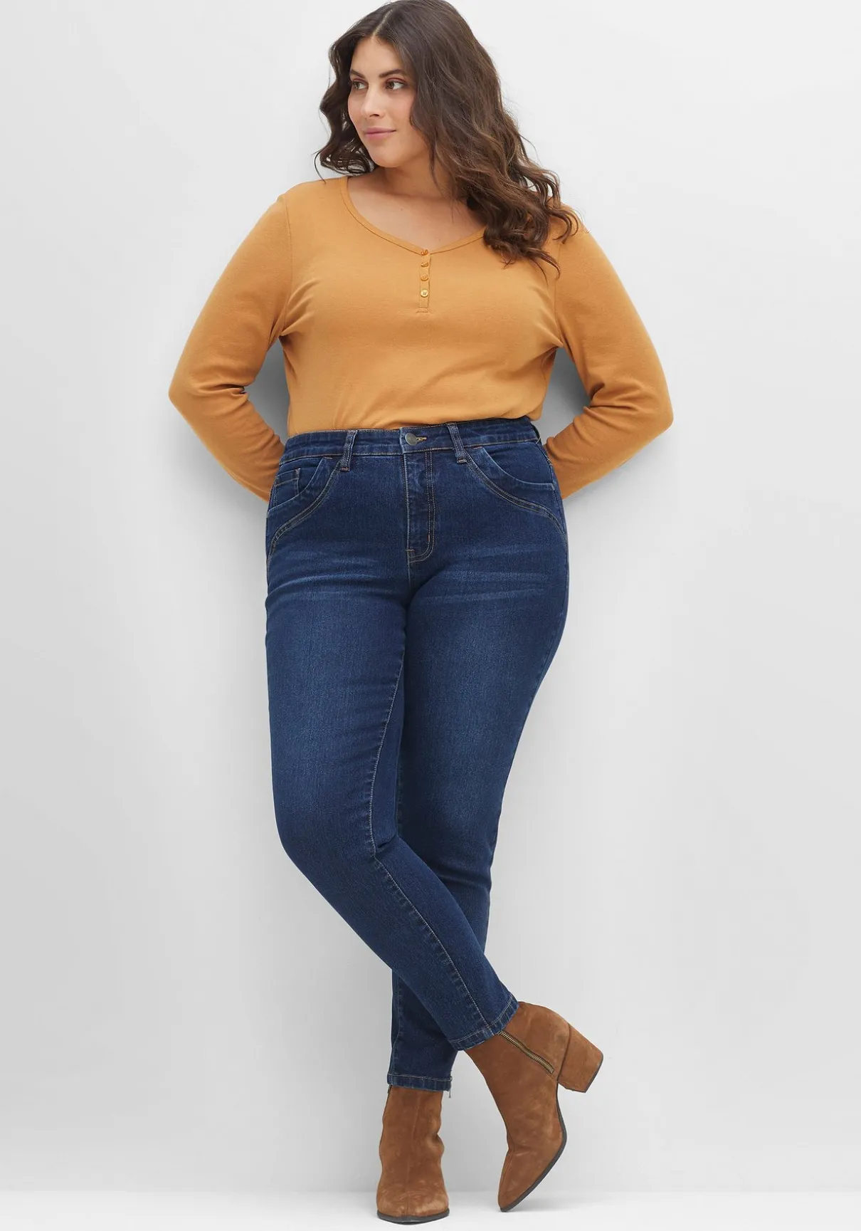Die Denimqualität im Materialmix ist angenehm elastisch.