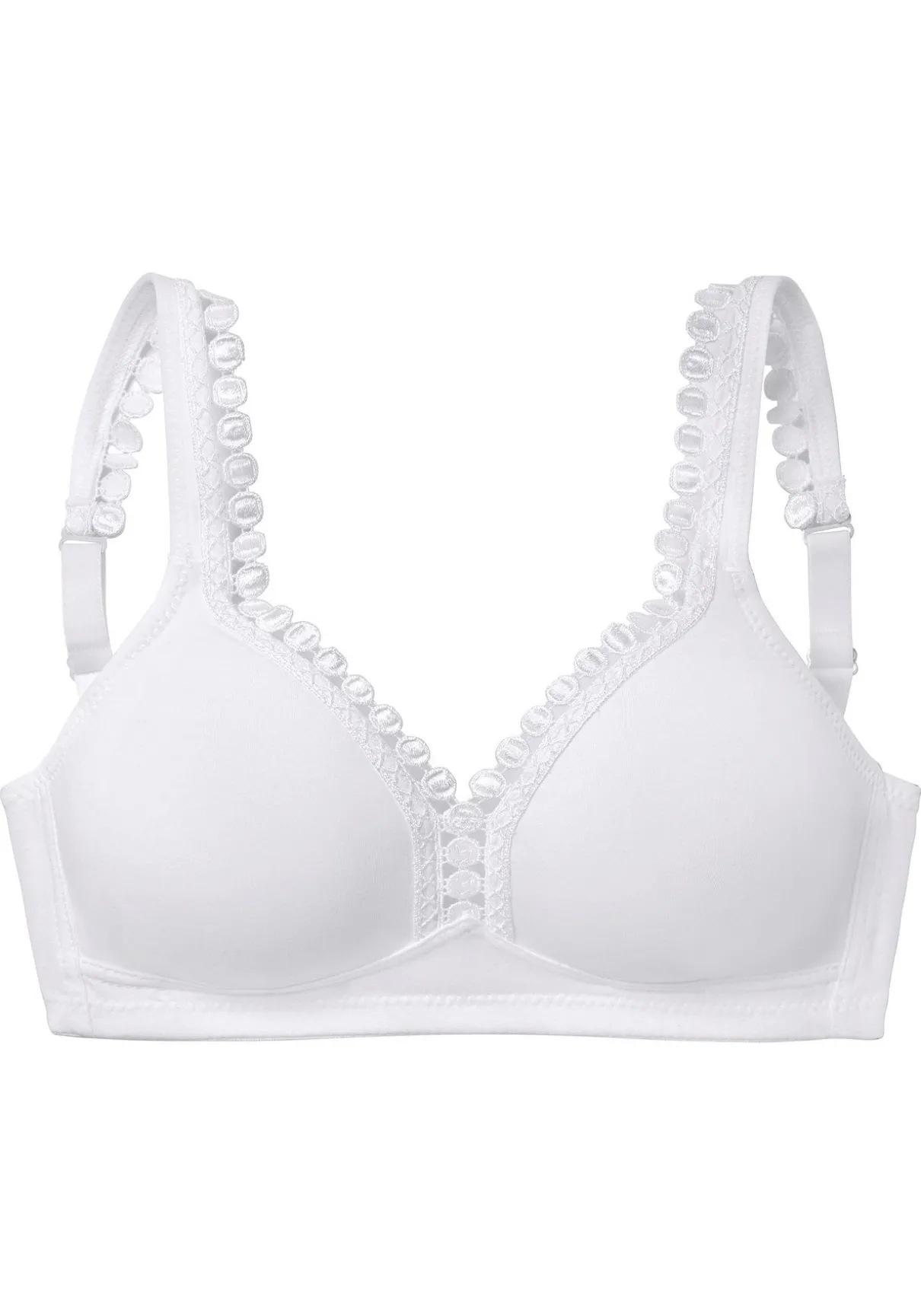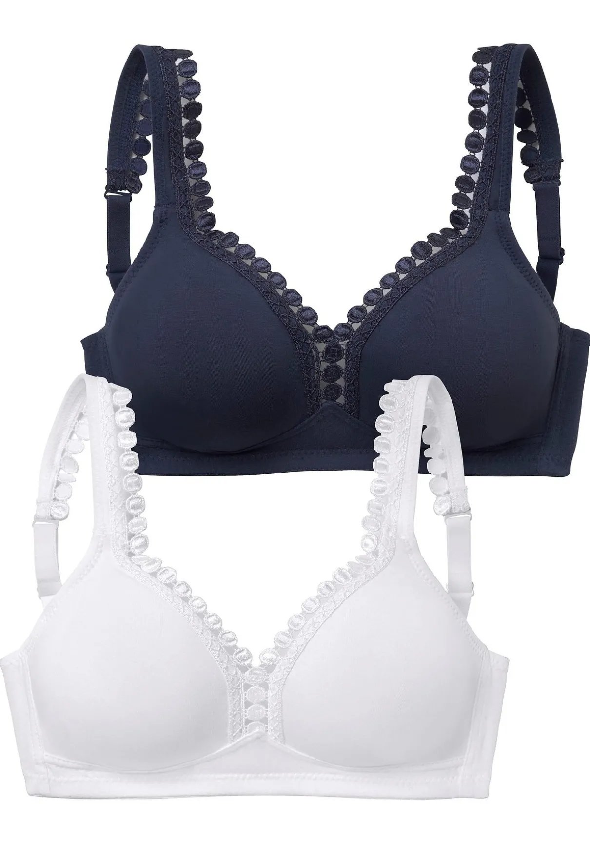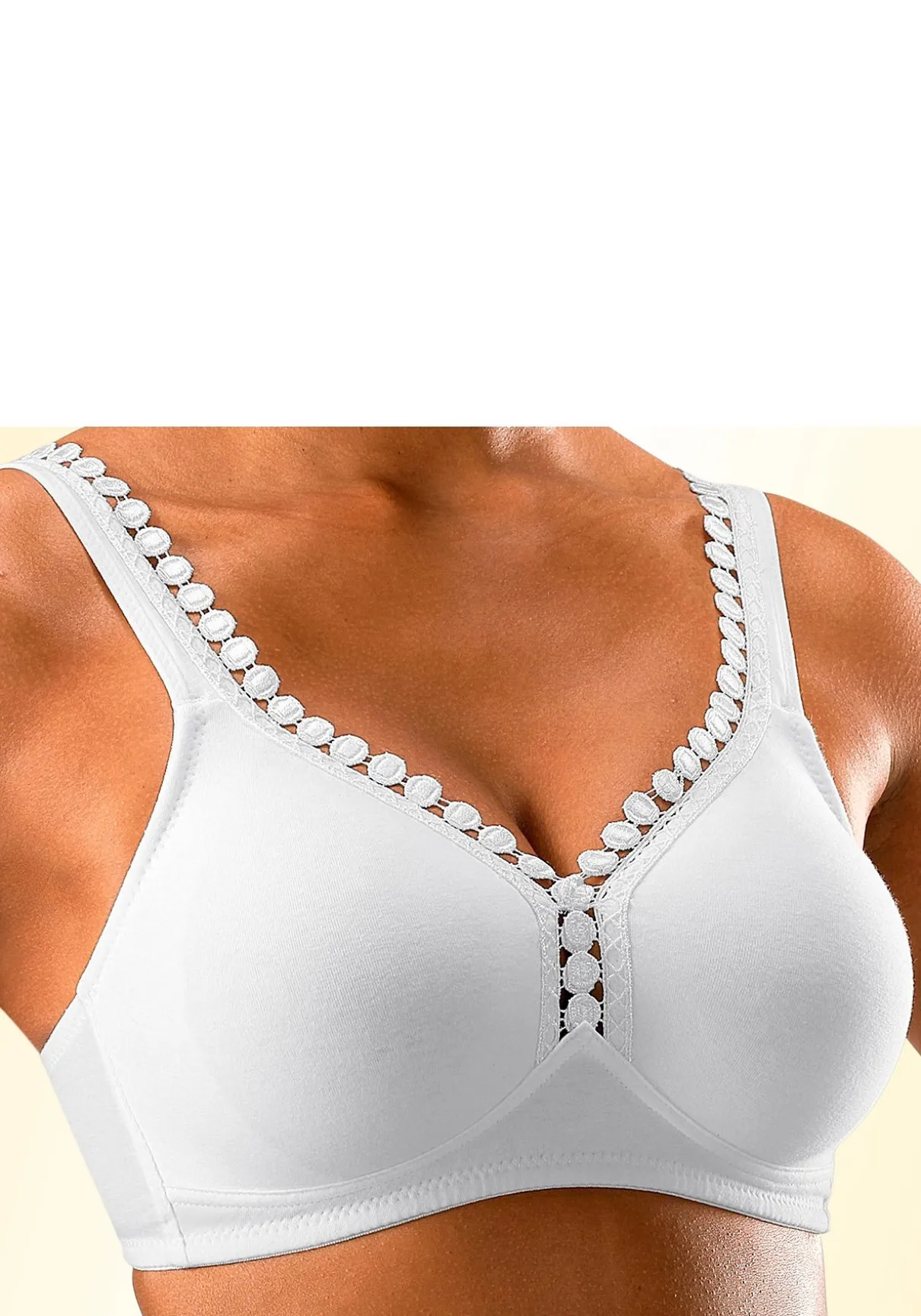 PETITE FLEUR: BH ohne Bügel im 2er-Pack. Nahtlos vorgeformte, unwattierte Cups. Hübsche Zierkante am Dekolleté. Träger und Rückenverschluss verstellbar. Aus 80% Baumwolle, 15% Viskose, 5% Elasthan. BHs sind nicht trocknergeeignet, da die Versteller und Ringe durch die Hitze beschädigt werden und brechen.