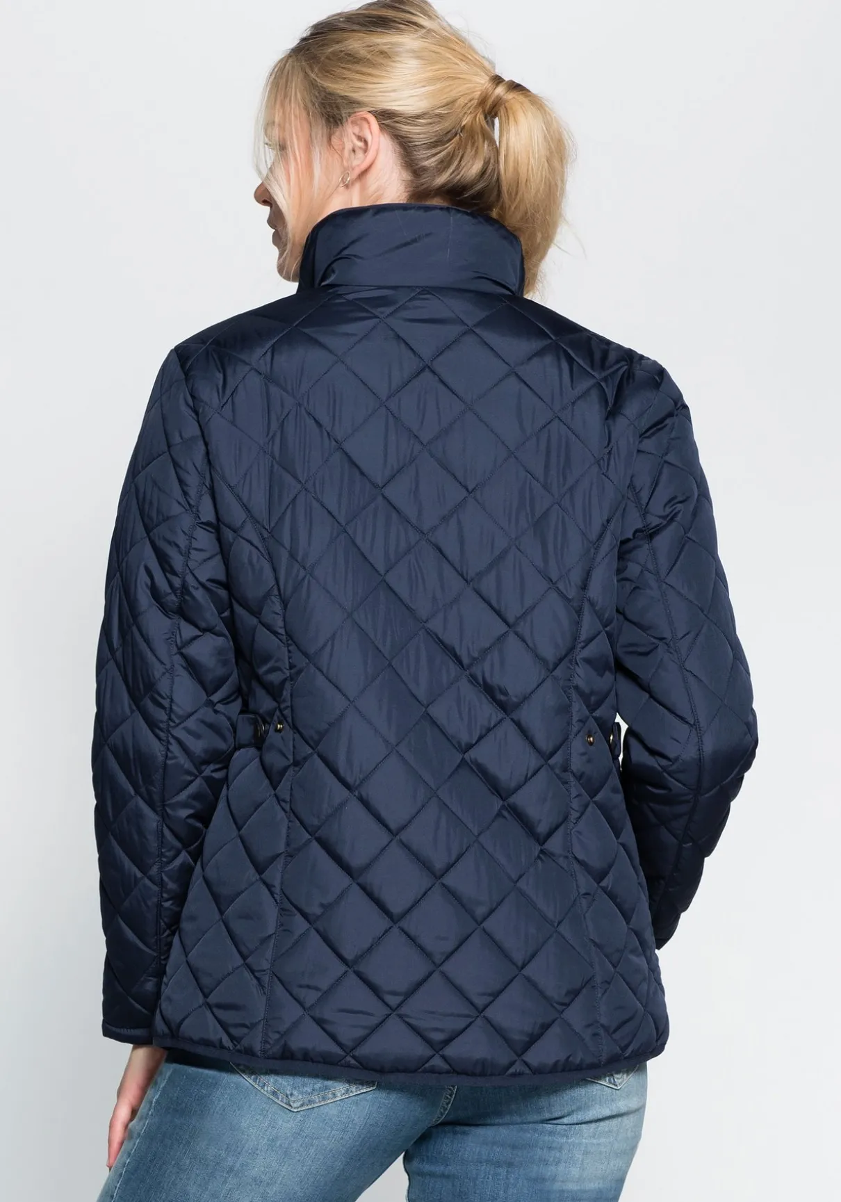 Diese Steppjacke verdankt ihren sportiv-femininen Look nicht nur der modischen Rautensteppung, sondern auch ihren besonderen Details wie den Reißverschlussanhängern aus kontrastfarbenem Lederimitat. Der hochschließende Stehkragen schützt vor Wind und Wetter und macht die Jacke ideal für die Übergangszeit. Mit kleiner, paspelierter Brusttasche sowie Innentasche und seitlichen Eingrifftaschen mit Reißverschluss. Die Innentasche eignet sich perfekt zum bequemen Verstauen des Smartphones.