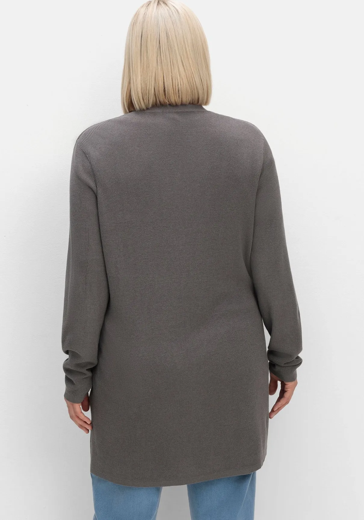 In figurumspielender Passform. Der etwas längere Schnitt fällt schmeichelnd über Hüfte und Po, der V-Ausschnitt streckt optisch die Figur.