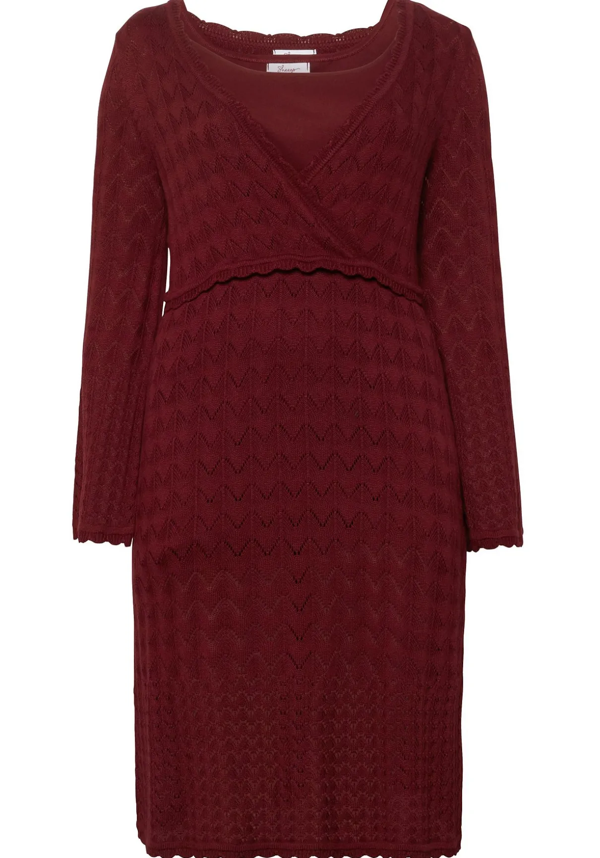 Der Ajourstrick mit Viskoseanteil gibt dem Kleid eine zarte Transparenz, das dazugehörige Unterkleid besteht aus pflegeleichter Jerseyware und macht den Look am Body blickdicht.