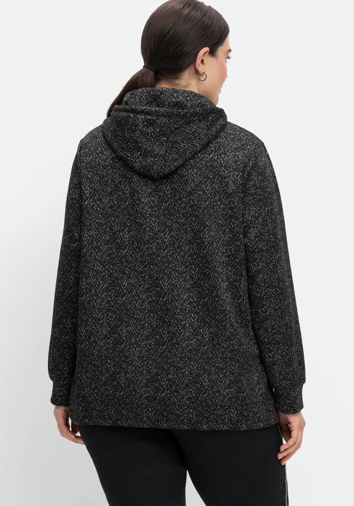 Sweatshirt in Salz-und-Pfeffer-Optik. Der typische Hoodie-Look ist mit einem Tunnelzug an der Kapuze und am Saum gestaltet