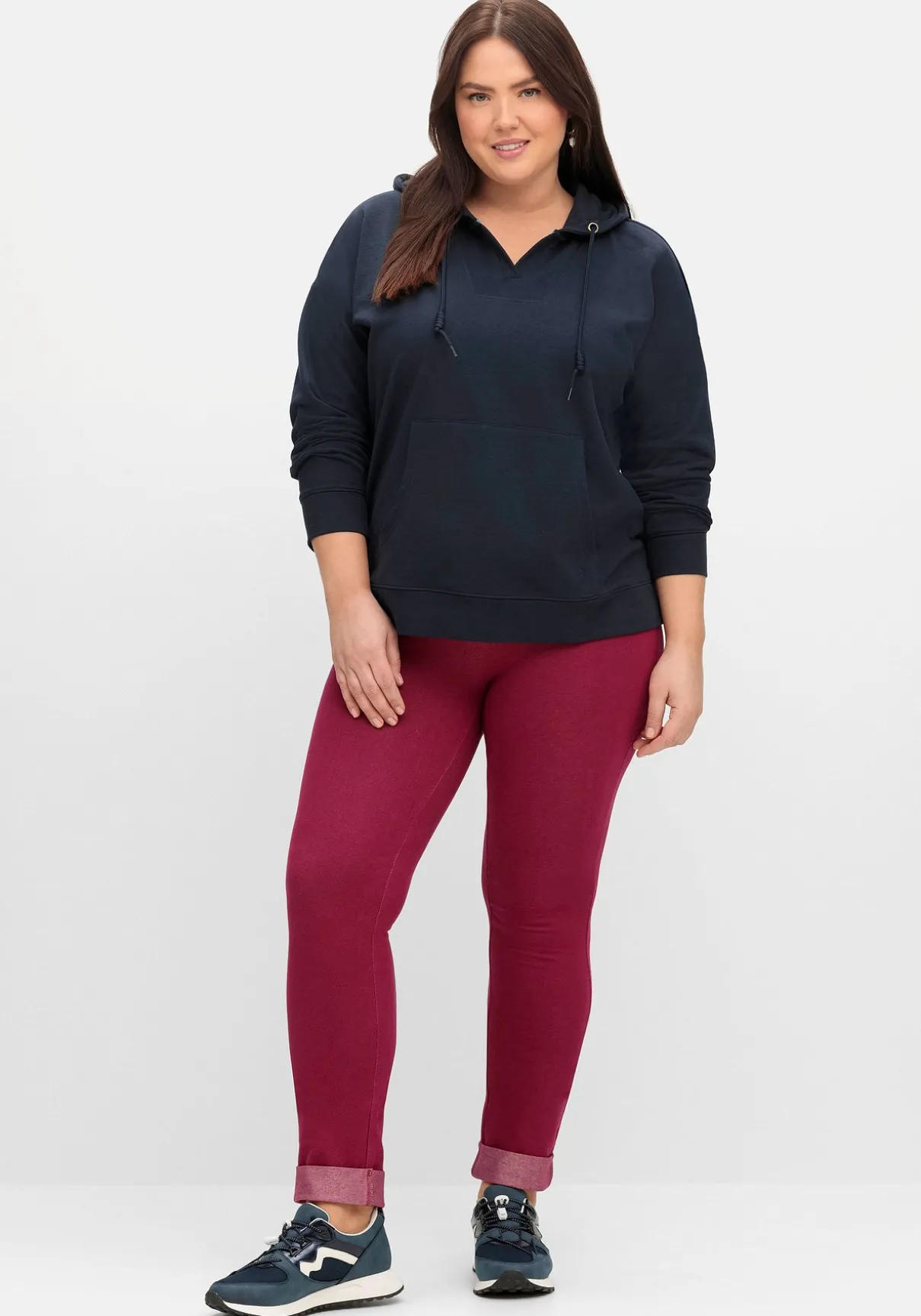 Sweatshirt mit streckendem V-Ausschnitt. Die bedruckte Kapuze mit regulierbarem Bindeband im Zusammenspiel mit der modischen Kängurutasche lässt einen sportiven Casual-Look entstehen. Überschnittene Schultern runden den Hoodie lässig ab.