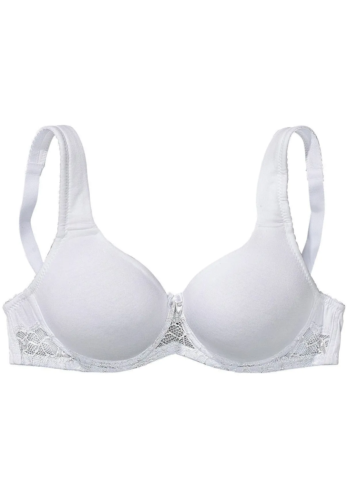 Toller T-Shirt-BH aus einer Mix & Match-Serie von NUANCE aus softer Baumwolle mit hübscher Jacquardspitze. Alles miteinander kombinierbar. Träger und Rückenverschluss verstellbar. Mit nahtlos vorgeformten, ungefütterten Cups und flacher Jacquardspitze im Unterbrustband. Breitere, leicht gefütterte Träger für einen komfortablen Halt. Eingearbeitete Bügel geben zuverlässigen Halt. Träger und Rückenverschluss hinten verstellbar. Aus 85% Baumwolle, 10% Polyamid, 5% Elasthan. BHs sind nicht trocknergeeignet, da die Versteller und Ringe durch die Hitze beschädigt werden und brechen.