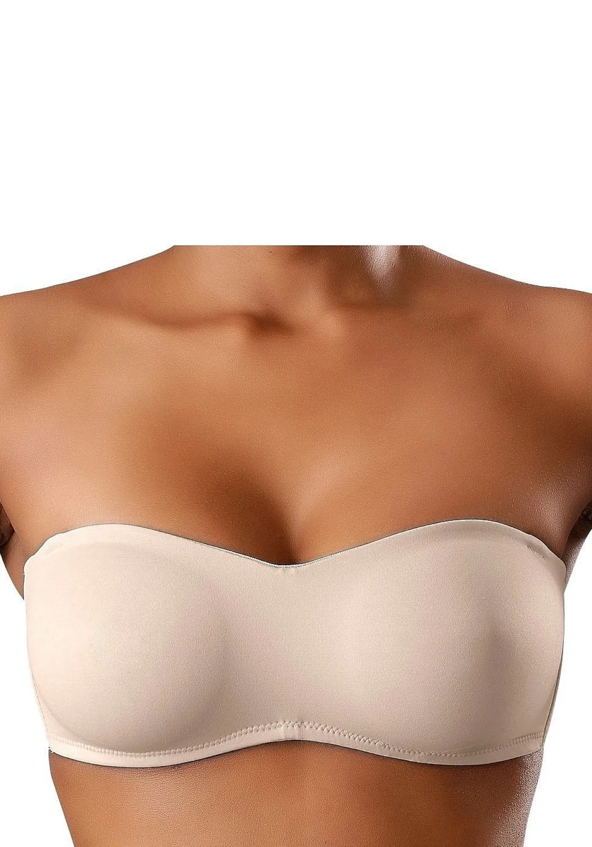 Schlichter Bandeau BH mit funktionalen, abnehmbaren Trägern. Ohne Träger perfekt zu eleganten Kleidern oder trägerlosen Oberteilen zu kombinieren. Die nahtlos vorgeformten, ungefütterten Cups umschließen die Büste und zeichnen sich auch unter eng anliegenden Teilen nicht ab. Ein breiter Mittelsteg und seitlich eingearbeitete Stäbchen bieten Halt. Durch eingearbeitete Silikonstreifen bleibt alles an seinem Platz und nichts rutscht. Wenn Sie nicht auf Träger verzichten möchten, können Sie auch transparente Träger zu diesem Artikel verwenden: einfach in die Schlaufen einstecken. Passende Träger zum Bestellen finden Sie hier im Shop. Die normalen Träger, die bei dem Artikel dabei sind, können in normaler Trägerstellung oder hinten überkreuzt getragen werden. Träger verstellbar, hinten im Rücken Haken- Ösenverschluss mit 3fach Verstellmöglichkeit. Das weiche Microfaser-Material trägt sich angenehm auf der Haut. Klassische Dessous. Bequeme Alltags-Dessous. Modische Dessous. Der T-Shirt-Bandeau-BH ist aus 85% Polyamid, 15% Elasthan. BHs sind nicht trocknergeeignet, da die Versteller und Ringe durch die Hitze beschädigt werden und brechen.