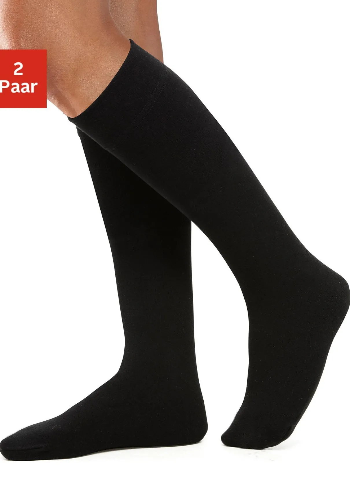 Thermokniestrümpfe von Lavana im praktischen 2er-Pack. Weiches Komfortbündchen mit optimalem Sitz. Weich und wärmend durch angeraute Innenseite. Gut in Stiefeln oder Wanderschuhen zu tragen. Elastisches Mischgewebe für mehr Komfort.