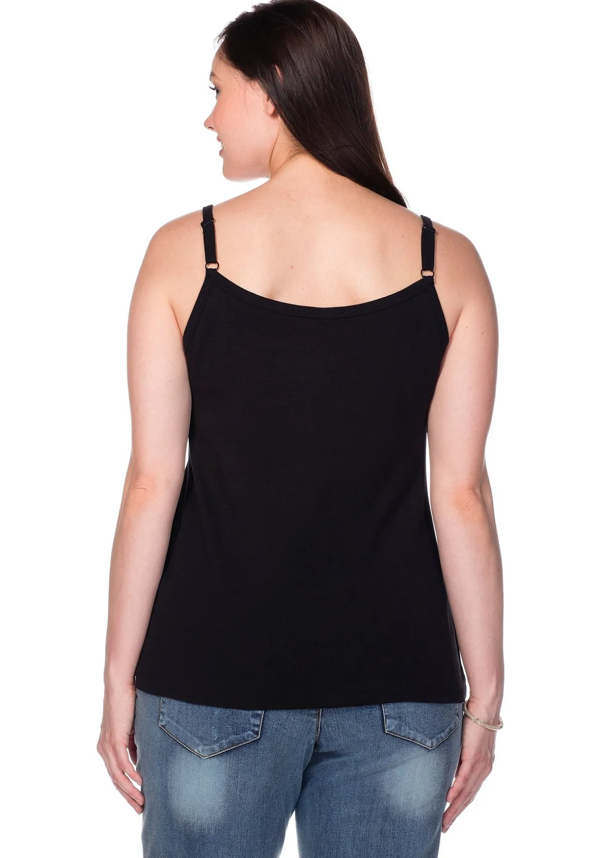 Funktioniert solo getragen genauso wie zum Unterziehen: Das Top überzeugt mit längenverstellbaren Spaghettiträgern, Rundhalsausschnitt und einem bequemen Schnitt.
