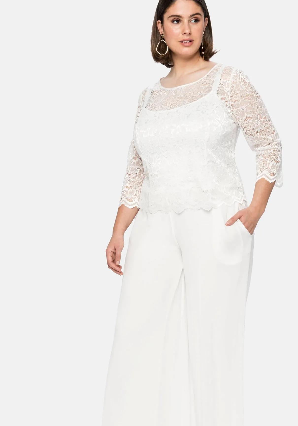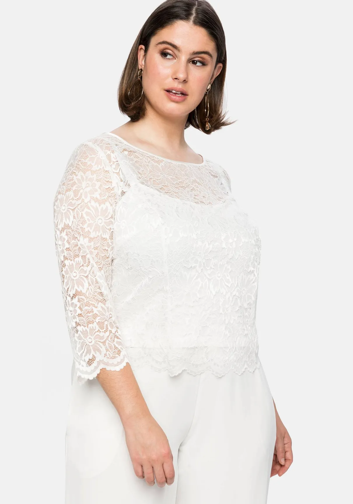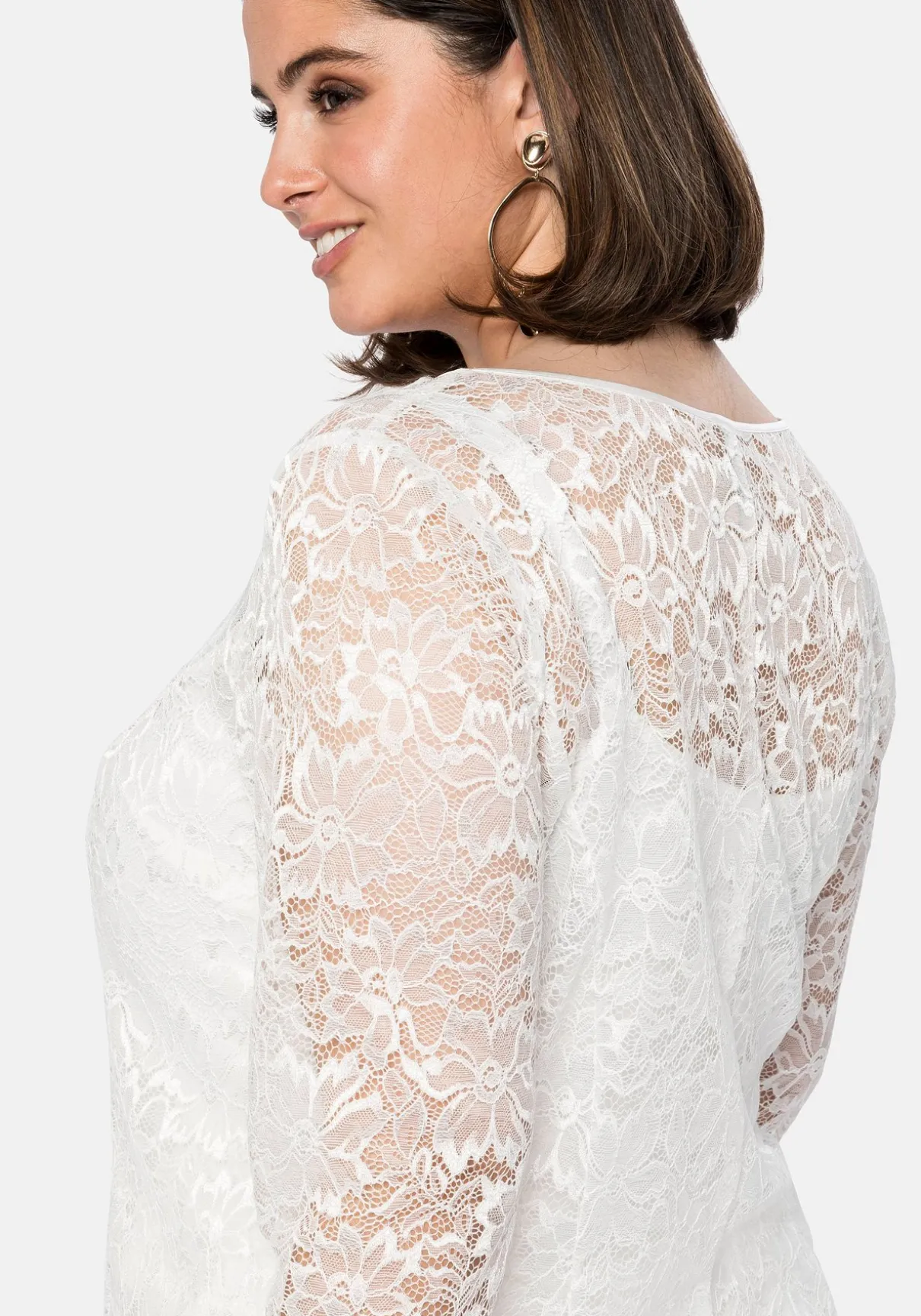 Tunika mit Rundhalsausschnitt. Die fein glänzende, florale Spitze verleiht dem Oberteil verführerische Transparenz, ein Innentop macht den Body blickdicht. Der Wellensaum unterstreicht den romantischen Style. Im Rücken erleichtert ein nahtfeiner Reißverschluss das An- und Ausziehen. Ein festlicher Begleiter für viele Looks von Party bis Hochzeit.