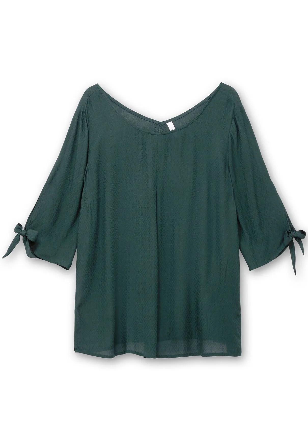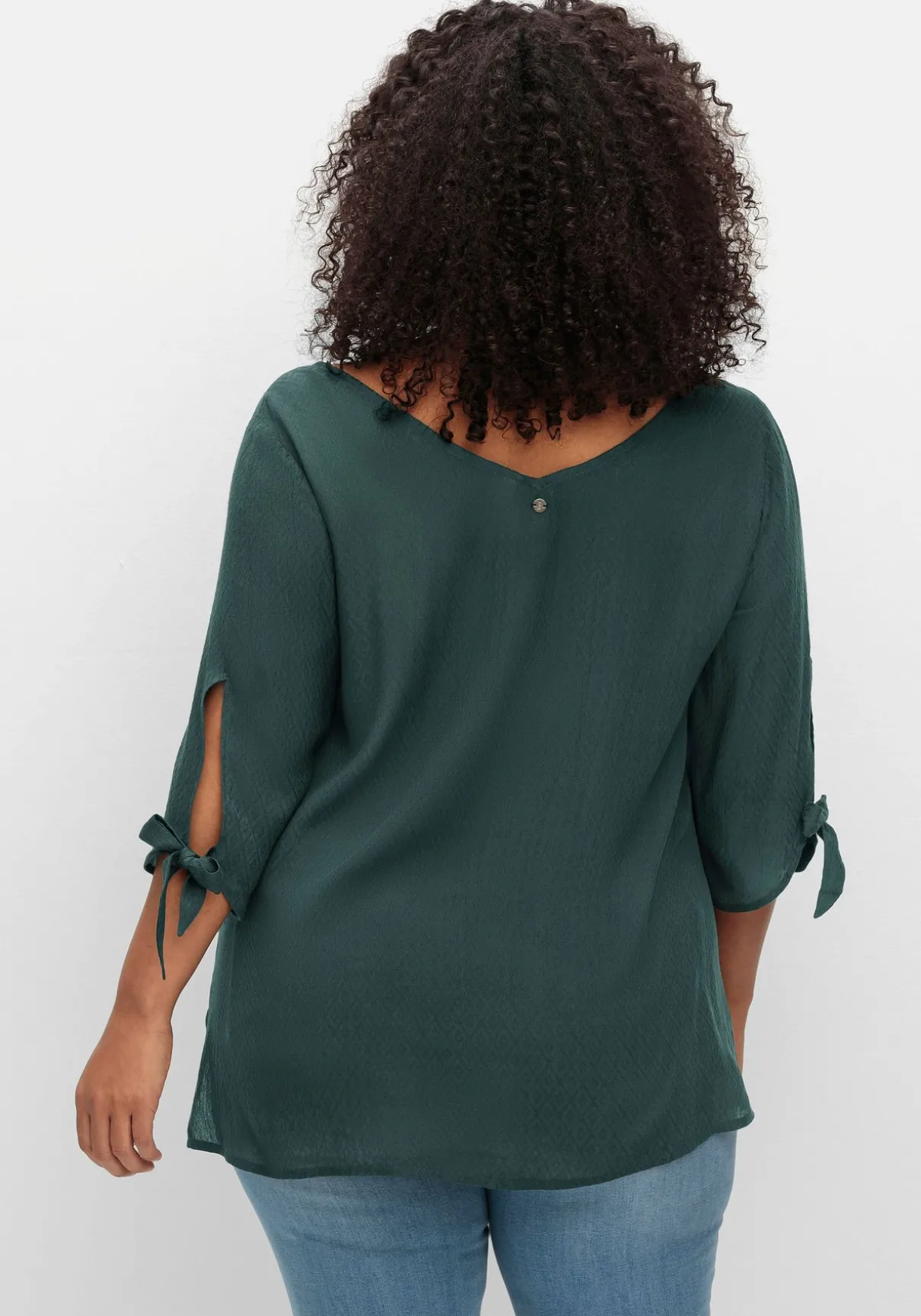Tunika in strukturierter Viskosequalität. Der bequeme, luftig fallende Style begeistert mit raffinierten Details: So überraschen die 3/4-langen Ärmel mit langem Schlitz und Bindeband. Vorn ist die Tunika mit einem weit gefassten Rundhalsausschnitt gearbeitet, hinten lässt der V-Ausschnitt den Blick auf den Nacken frei. Die Kellerfalte gibt dem Fit entspannte Weite, auch die seitlichen Schlitze sorgen für Bewegungsfreiheit.