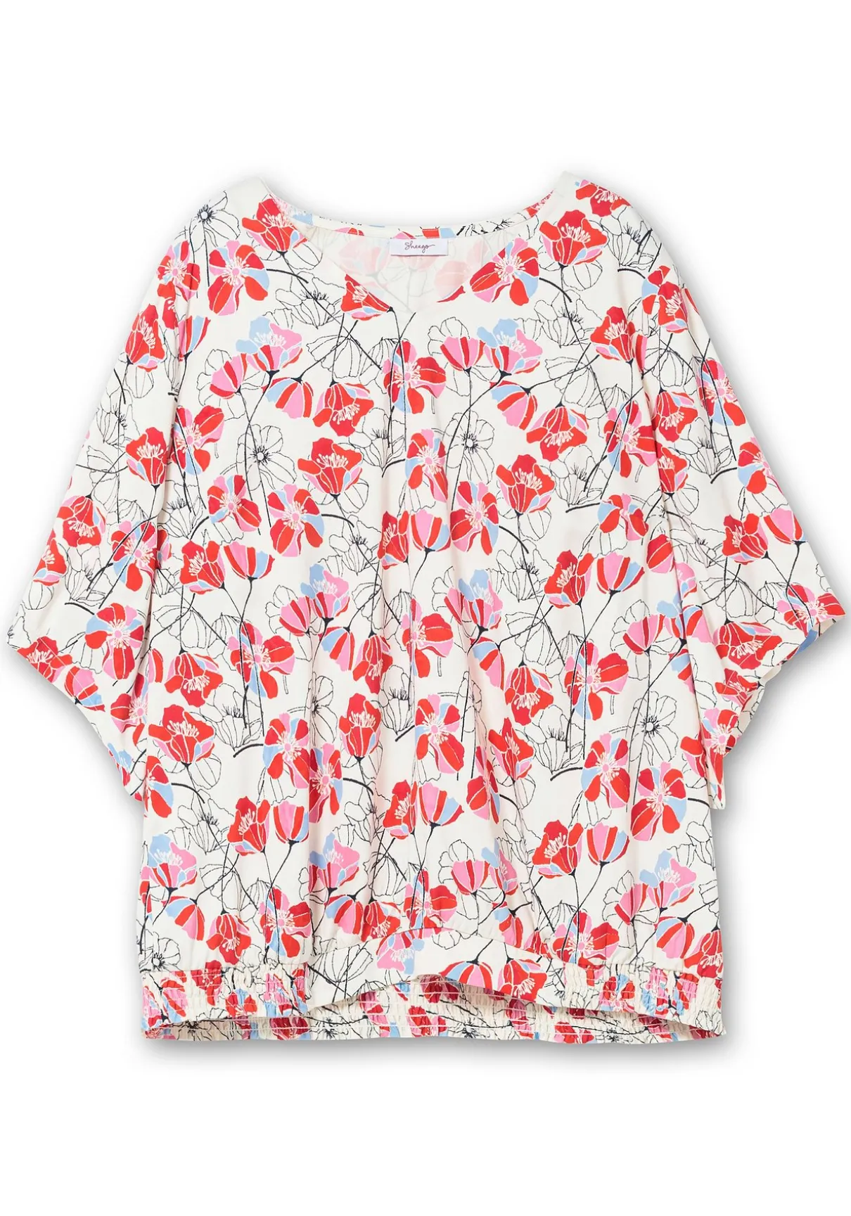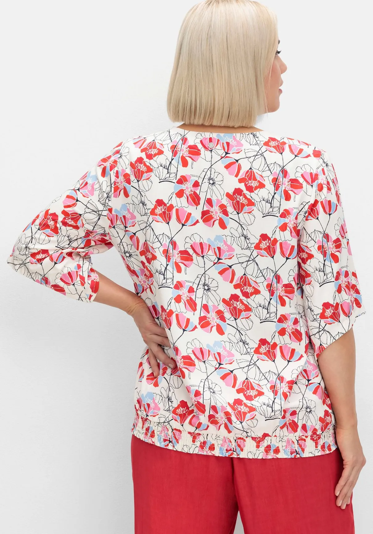 Tunika mit floralem Alloverprint. Das wunderschöne Blumenmuster wirkt leicht und feminin, der raffinierte Schnitt gibt dem Look Modernität. Dabei sorgen die locker geschnittenen, leicht verlängerten Flügelärmel genauso für Tragekomfort wie der bequeme Smokbund am Saum.