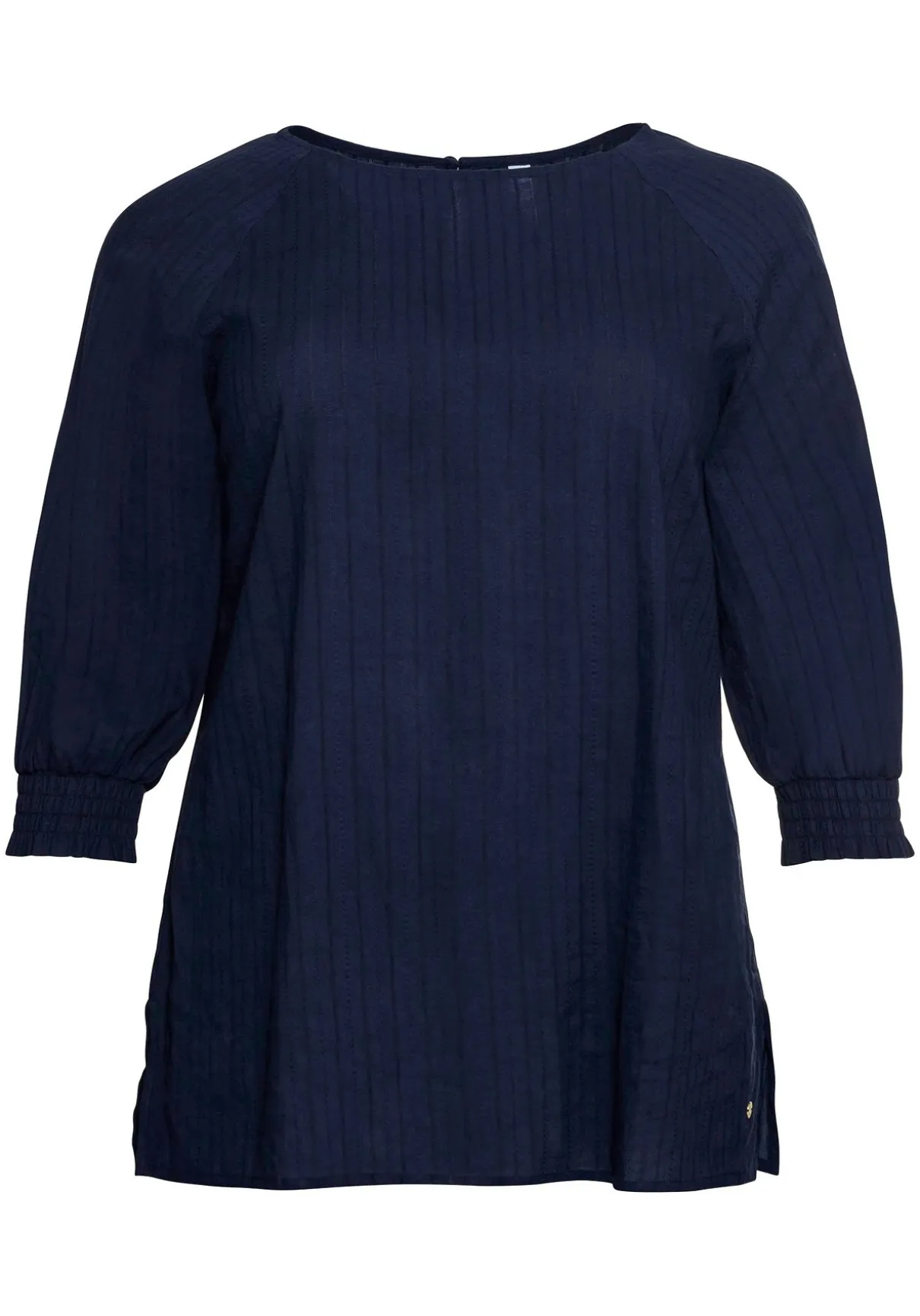 Der dezent transparente Blusenstoff ist aus reiner Baumwolle gearbeitet. Absolut blickdicht wird die Tunika in Kombination mit einem Unterziehtop.