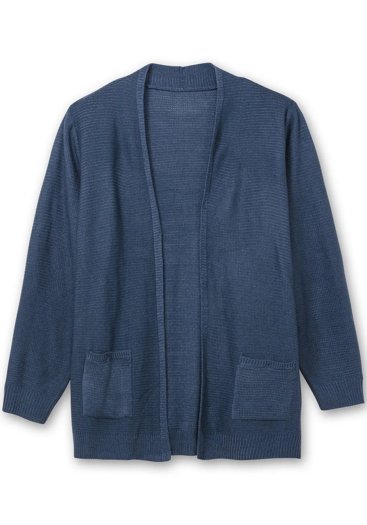Strickjacke im Linksstrick. Die Jacke überzeugt nicht nur mit legerem Sitz, sondern auch mit zeitloser Eleganz. Sie ist verschlusslos gearbeitet und mit einem dezenten Schalkragen und zwei aufgesetzten Taschen gestaltet, breite Rippbündchen am Langarm unterstreichen den entspannten Look.
