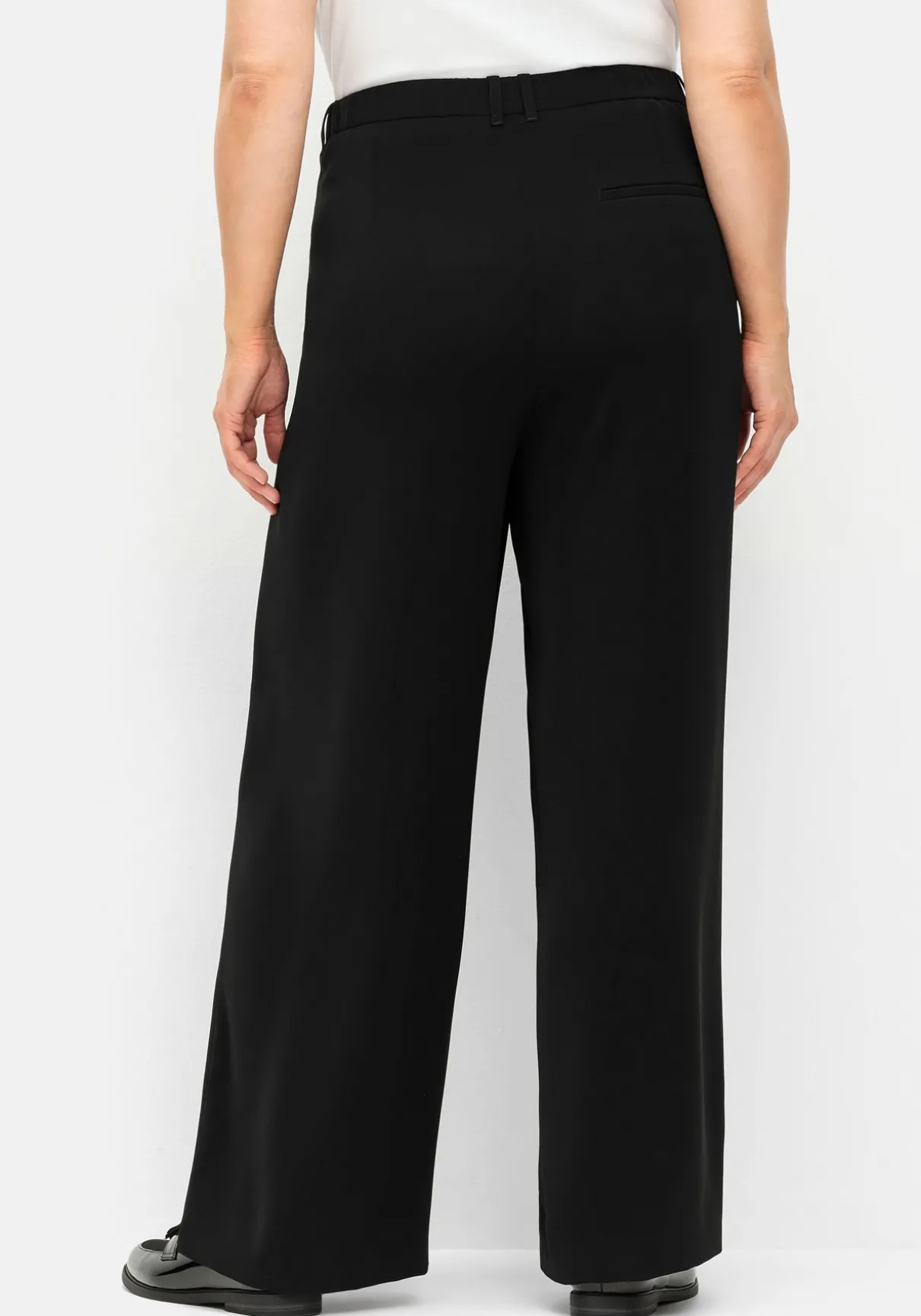 Businesshose in weiter Beinform. Der Formbund ist mit Haken, Ösen und Reißverschluss sowie Gürtelschlaufen gearbeitet. Für einen bequemen Sitz in der Taille sorgt der Teilgummibund hinten. Seitliche Eingrifftaschen und eine Leistentasche hinten ergänzen den gepflegten Look. So entsteht eine Hose, die zu allen Büro-Outfits passt und sich perfekt mit den Blazern aus unserer Business-Kollektion kombinieren lässt.