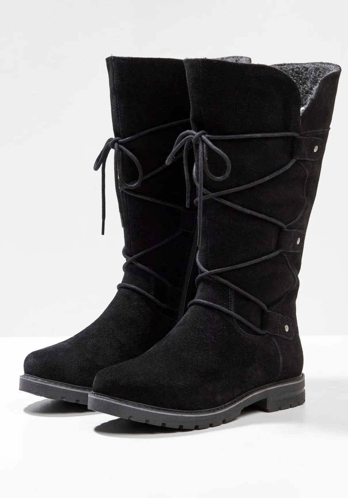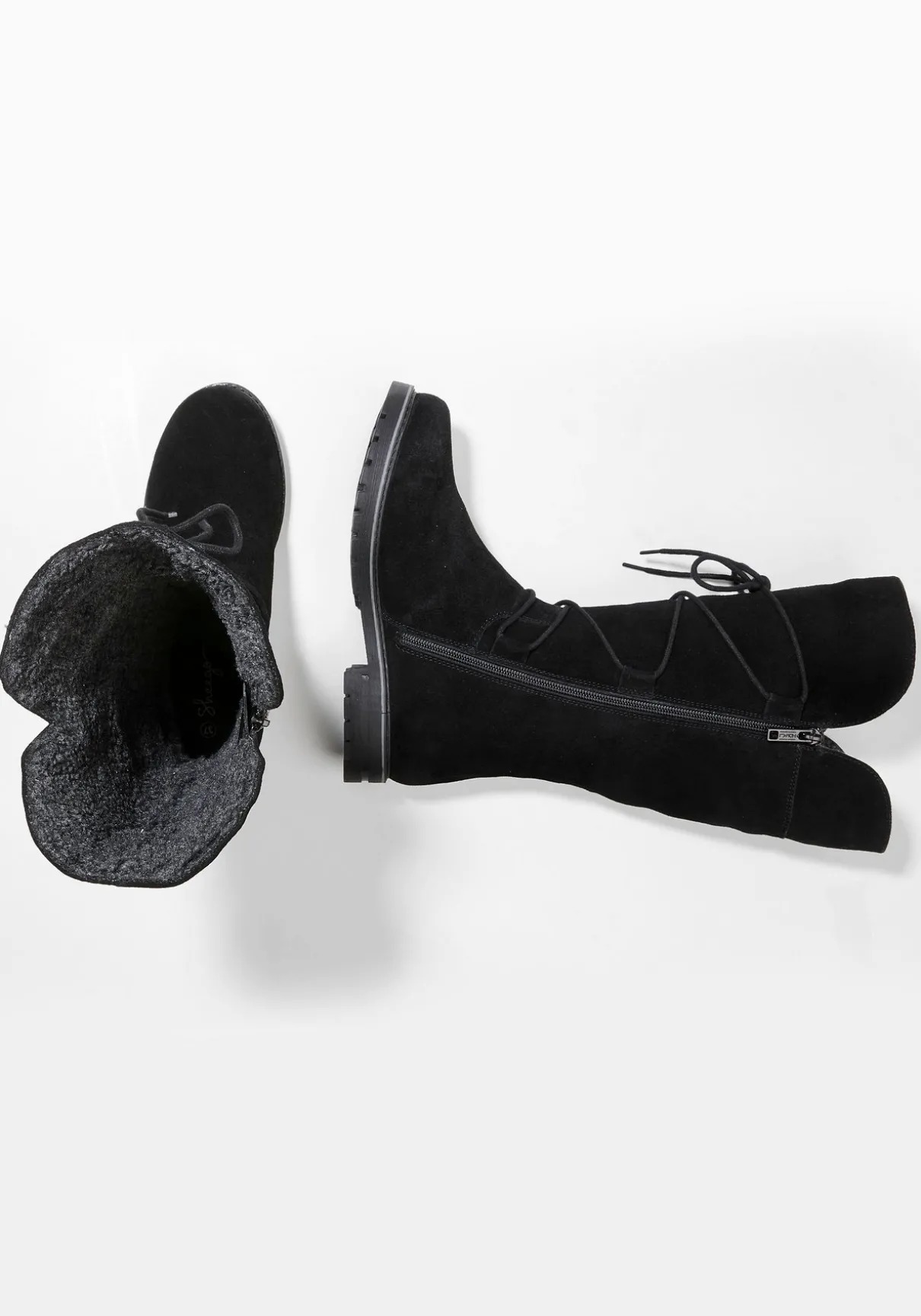 Das Veloursleder ist mit einem Fellimitat warm gefüttert.