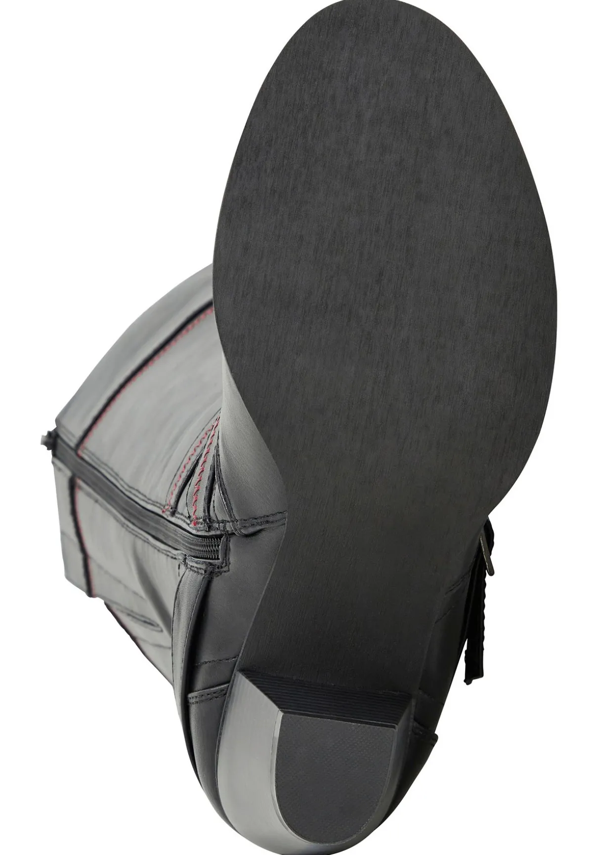Der Stiefel besteht aus hochwertigem, trageangenehmem Lederimitat. Unser Tipp: Bitte beachte, dass die Schaftweite bei jedem Stiefelmodell unterschiedlich ausfallen kann. Miss daher vor der Bestellung deine Wadenweite nach – eine Anleitung dazu findest du in den Produktbildern.