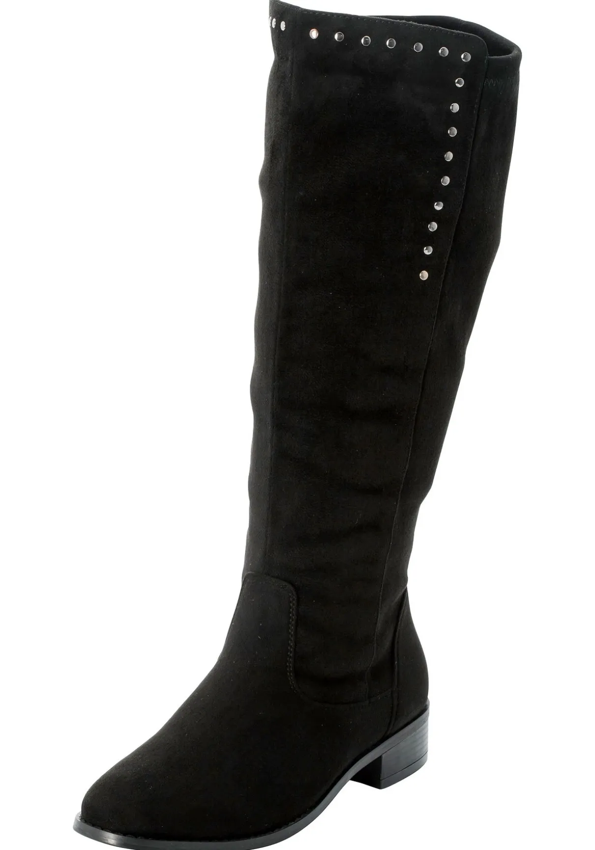 Weitschaftstiefel mit zwei Zierschnallen und Nieten. Für Tragekomfort sorgt der breite, elastische Einsatz hinten. Die profilierte Sohle und die abgerundete Spitze runden den Schuh ab.
