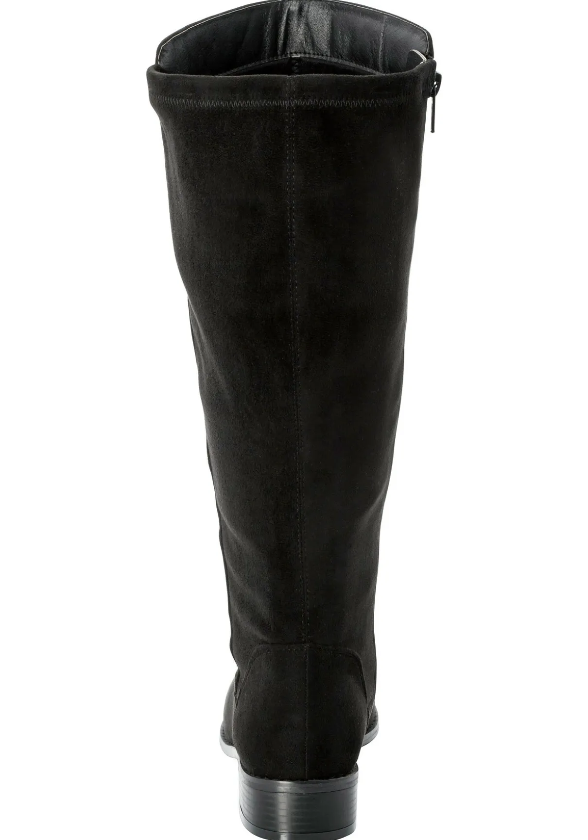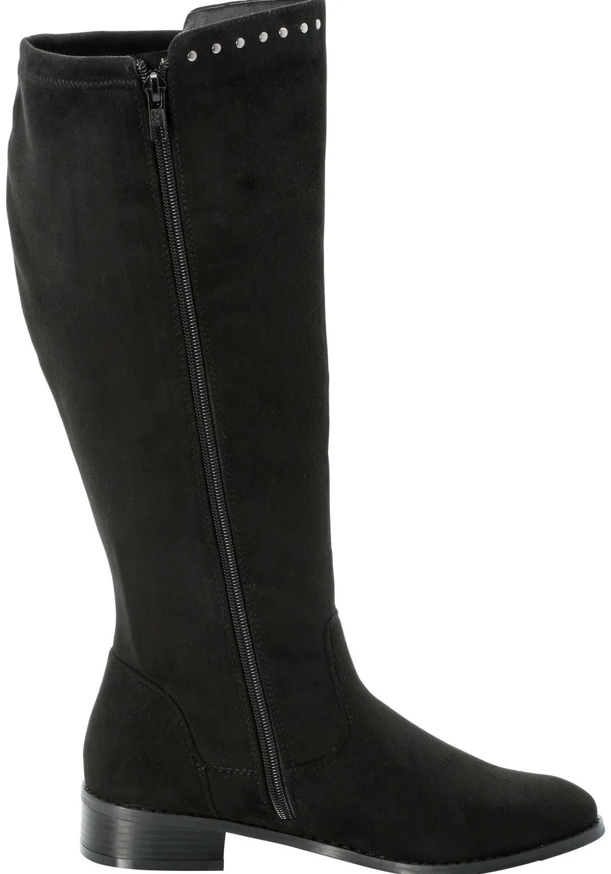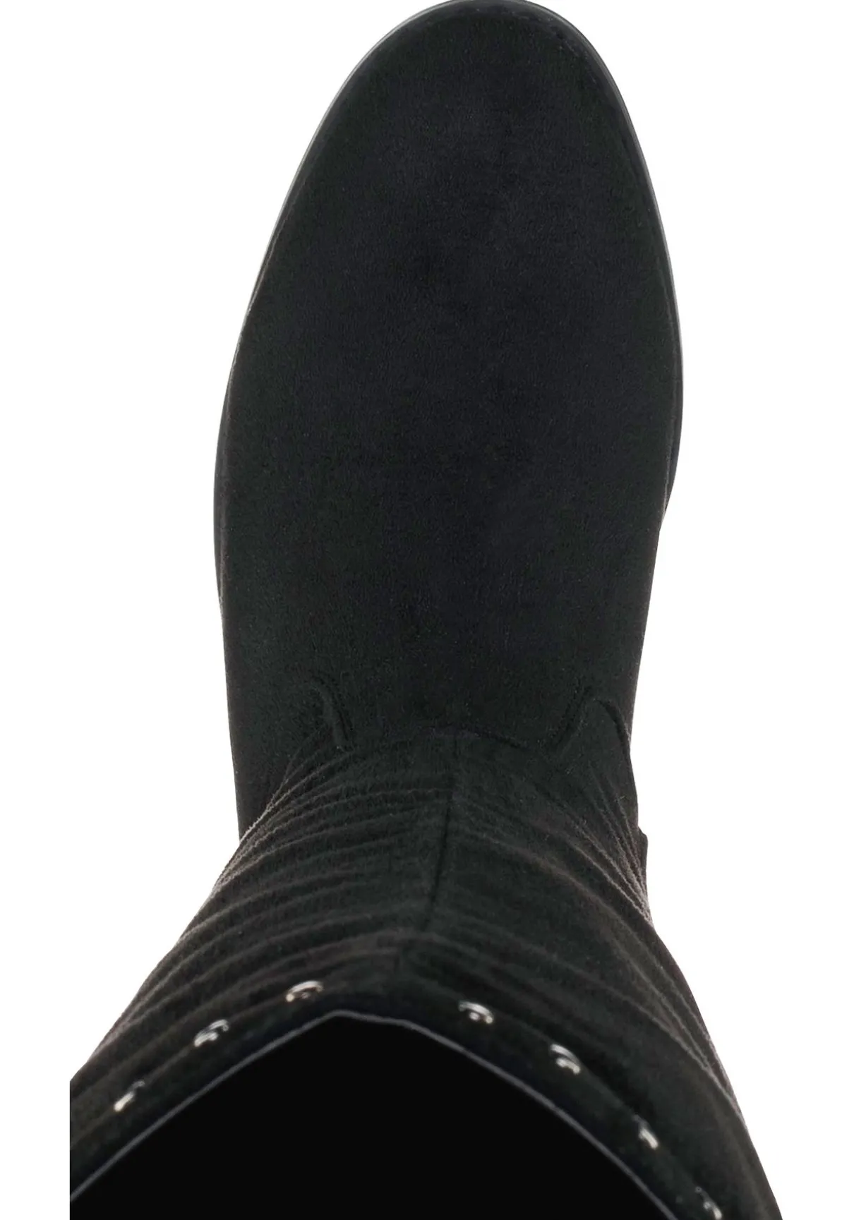 Der Weitschaftstiefel besteht aus Veloursleder-Imitat.