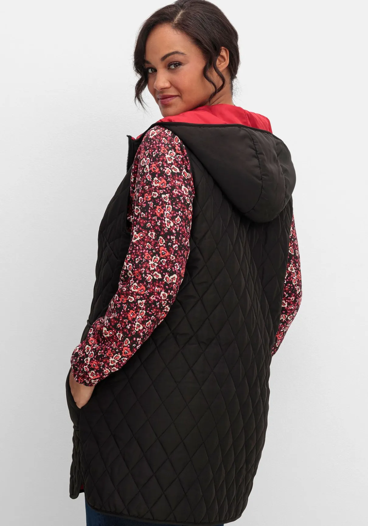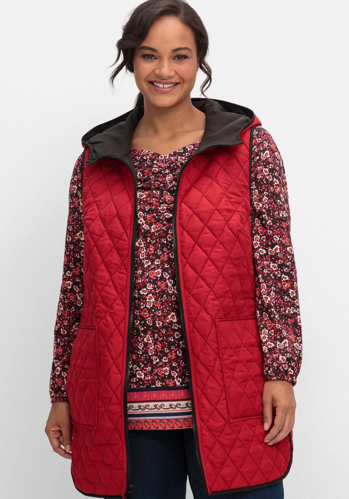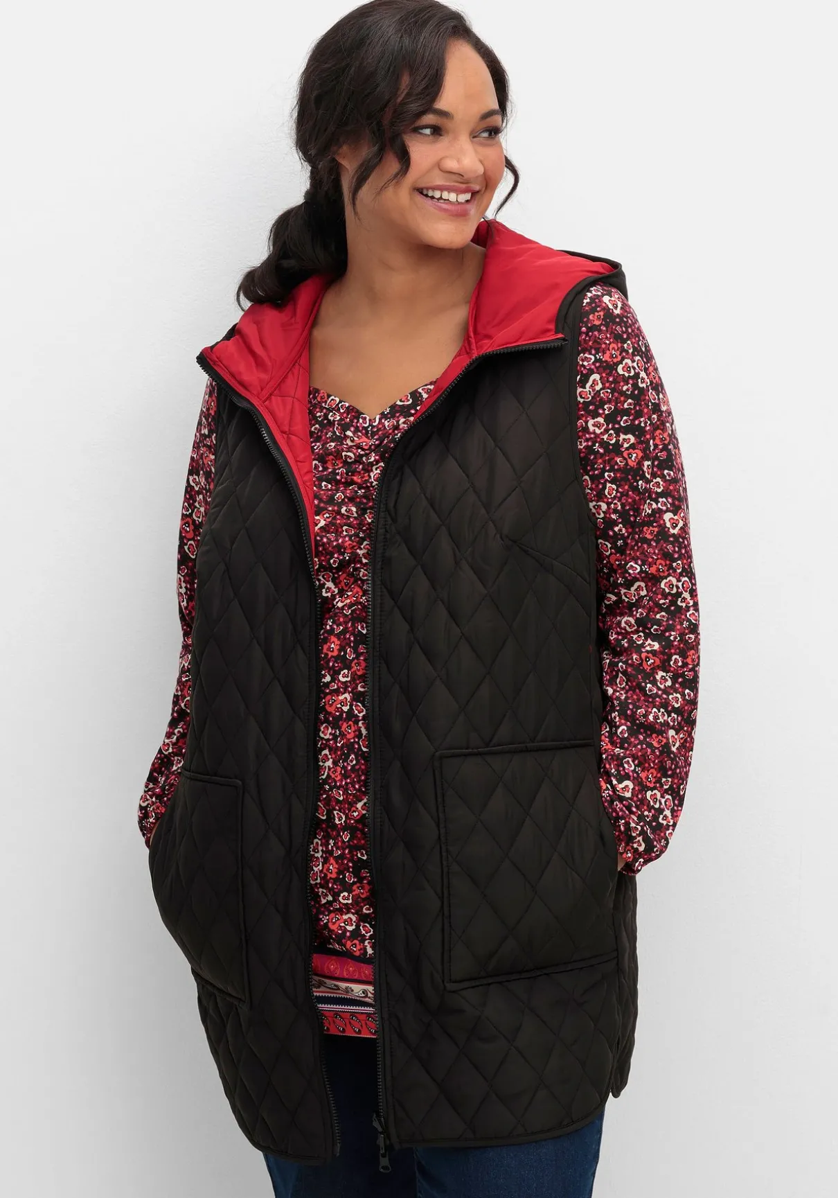 Steppweste zum Wenden. Durch die beiden Farben eröffnet die Weste vielfältige Kombinationsmöglichkeiten. Praktisch sind die Kapuze und der auch von unten zu öffnende 2-Wege-Reißverschluss. Die dekorative Rautensteppung und die beiden Taschen runden den sportiven Look modisch ab.