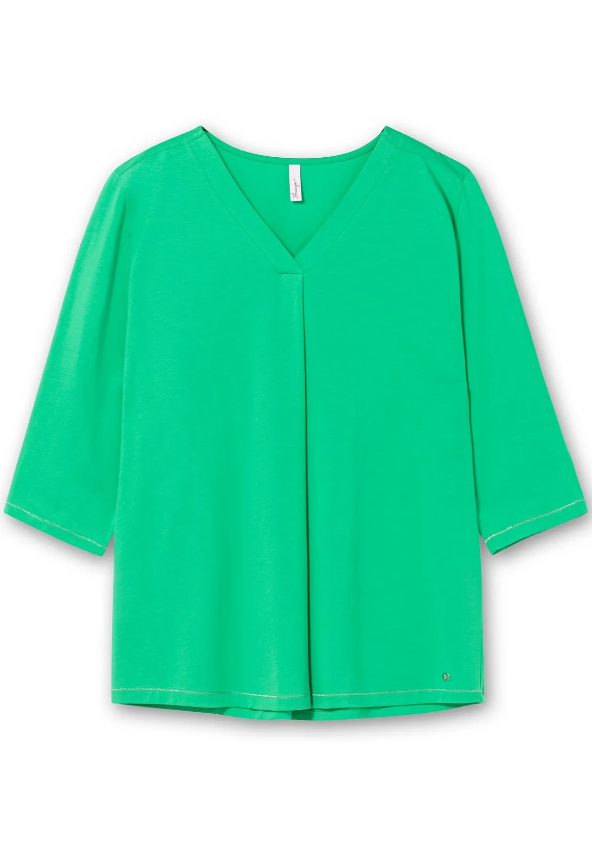 Shirt mit 3/4-Arm. Der breit eingefasste V-Ausschnitt wird durch eine Falte unterhalb des Ausschnitts ergänzt. Sie verleiht dem Shirt eine feminine Note und gibt der weich fließenden Qualität einen schönen Fall. Die kontrastfarbene Naht an Ärmelsaum und Saum rundet den schlichten Look stilvoll ab.