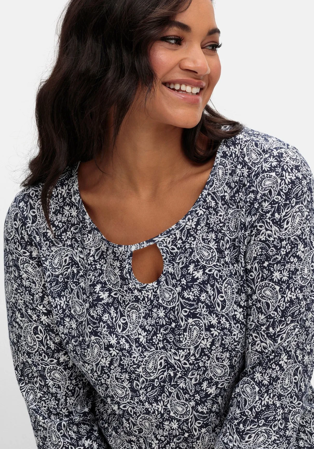 Shirt mit 3/4-Arm. Stilvoll und feminin wirkt der Paisley-Alloverprint. Am paspelierten Rundhalsausschnitt wird das Cut-out zum raffinierten Detail.