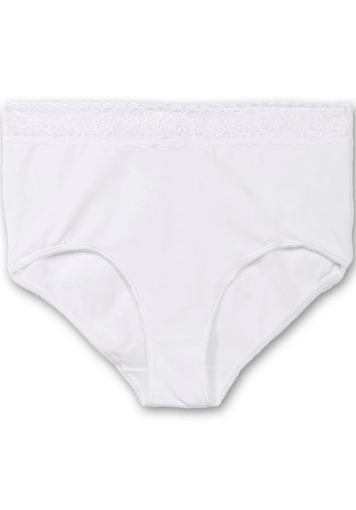 Taillenslips im praktischen Viererpack von wäschepur. Für eine feminine Note sorgt der breite Bund aus elastischer Spitze. Auch die Beinabschlüsse sind elastisch gearbeitet und dadurch sehr tragekomfortabel.