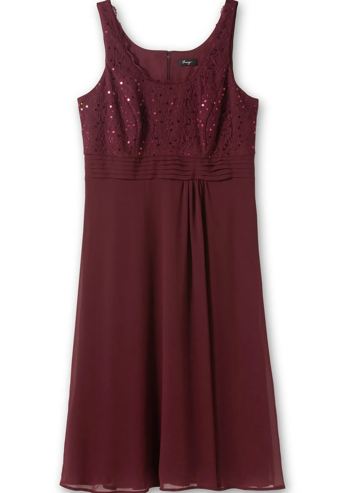 Ein wunderschönes Highlight: Dieses Abendkleid vereint feminine, florale Spitze und fließenden Chiffon. Absoluter Blickfang ist das Spitzenoberteil, das durchweg mit Pailletten besetzt ist. Der Rundhalsausschnitt unterstreicht dabei sanft das Dekolleté. Im Rücken befindet sich ein nahtfeiner Reißverschluss. Der Rock aus fließendem Chiffon sorgt für ein unbeschwertes Gefühl. Mit schmalen Trägern.