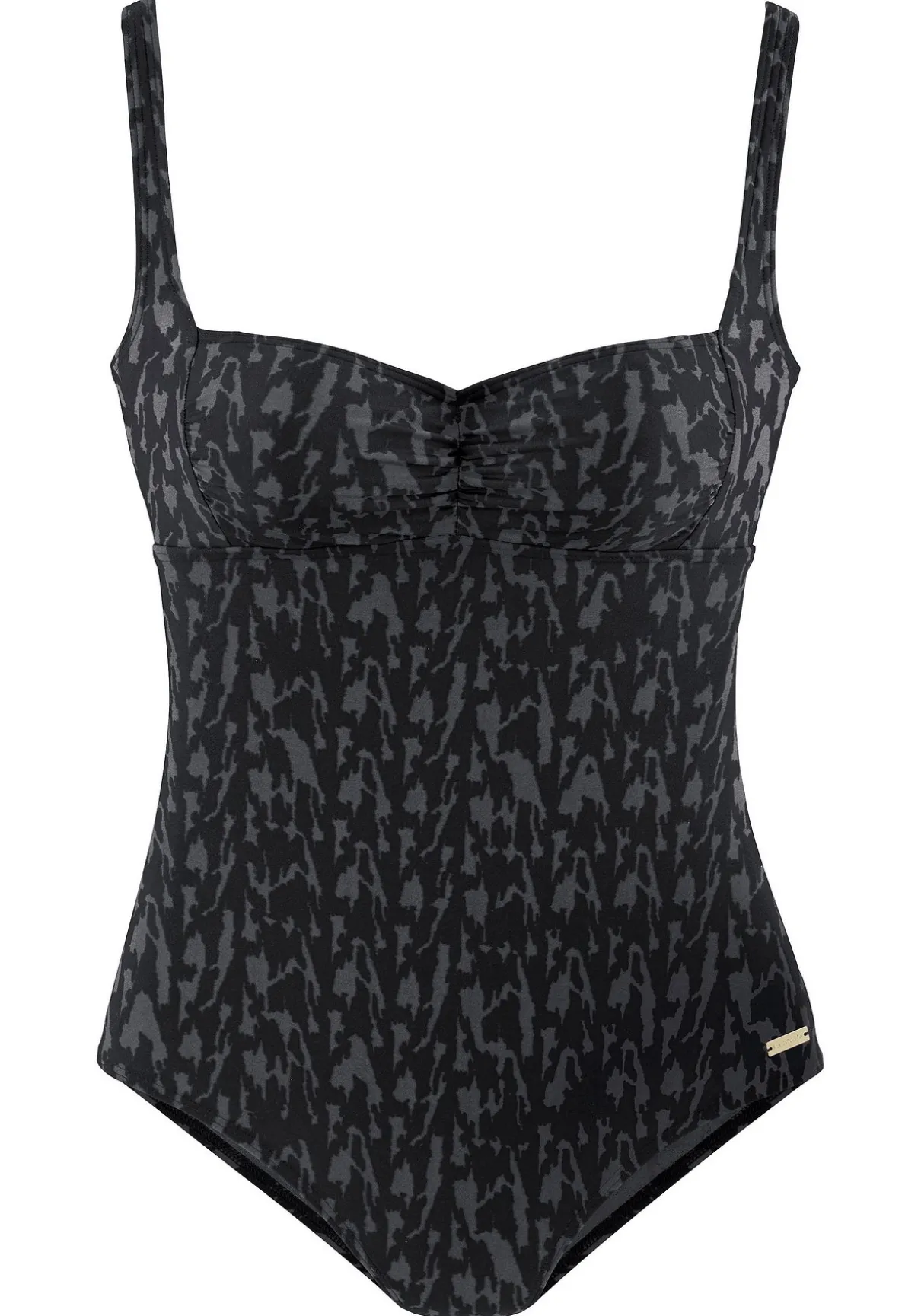 Mit modischem Druckdesign. Softcups, Unterbrustgummi vorn und Shaping-Einsatz vorn für eine schöne Strandfigur. Verstellbare Träger. Hoher gerader Rücken.