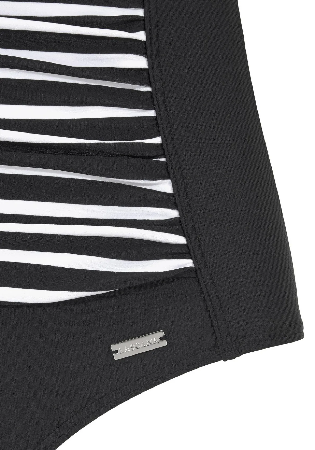 Badeanzug von LASCANA in 2 aktuellen Designs: mit bedrucktem oder gestreiftem Vorderteil. Eingearbeitete Softcups, das Unterbrustgummi vorn und der Shaping-Einsatz vorn zaubern eine traumhafte Silhouette. Verstellbare Träger.