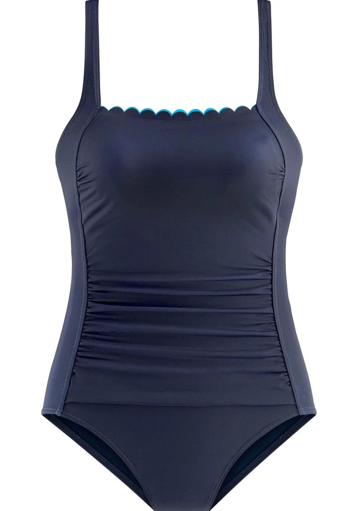 Edler Badeanzug von Lascana. Eckiger Ausschnitt mit doppelter Muschelkante. Miedereinsatz mit schmeichelnden Raffungen über dem Bauch. Mit eingearbeiteten Softcups und Unterbrustgummi vorn. Verstellbare Träger. Flacher Beinausschnitt. Weiche Microfaser.