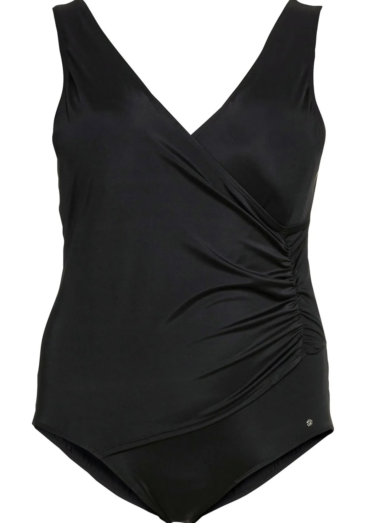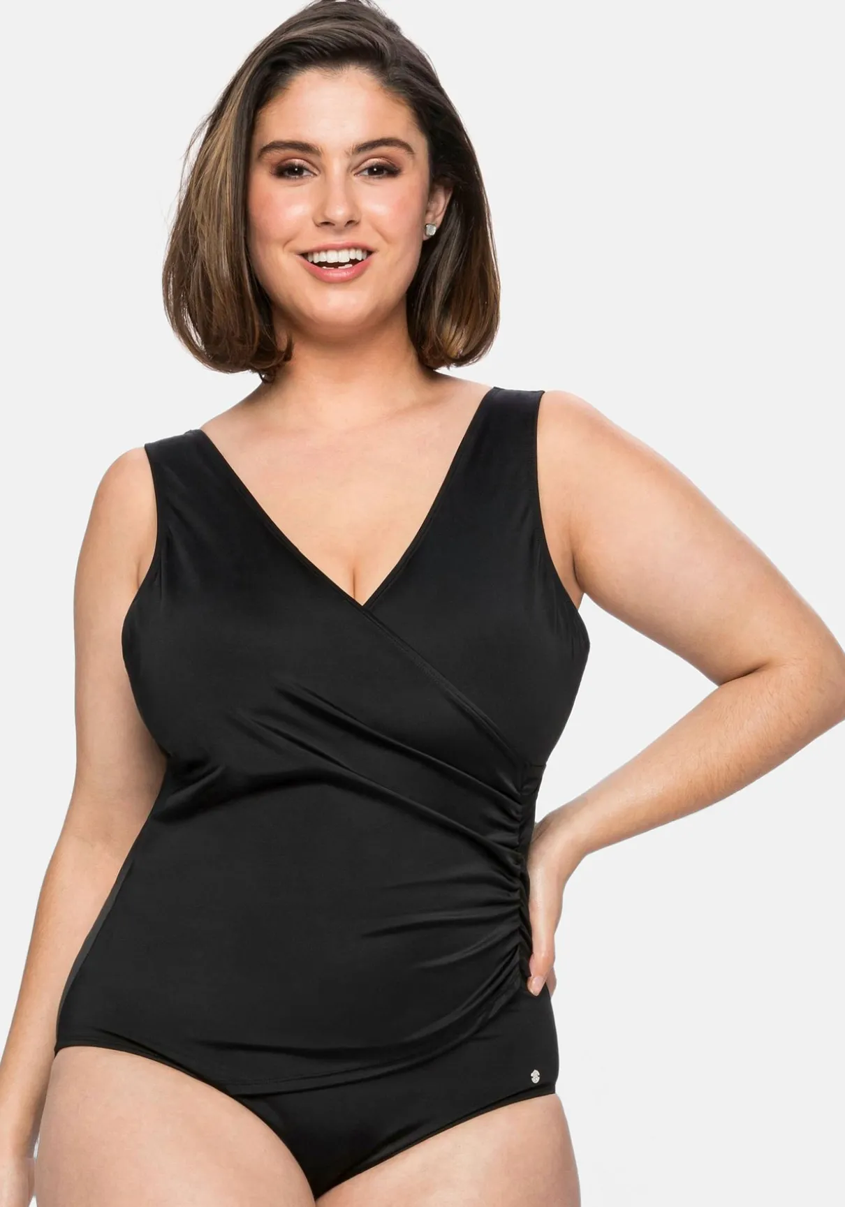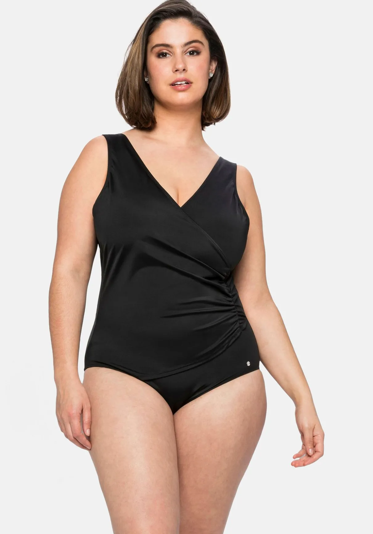 Badeanzug in Wickeloptik. Das Zierband setzt hier zusätzliche dekorative Akzente. Wattierte Softcups formen das Dekolleté, breite Träger sorgen für hohen Tragekomfort.