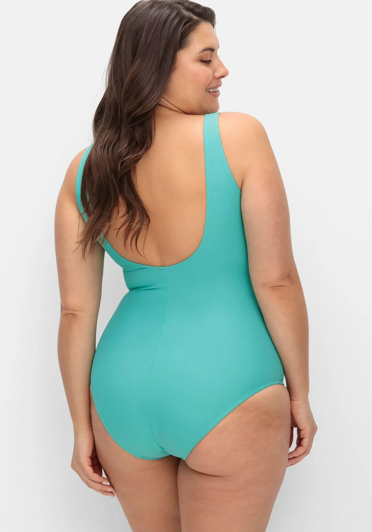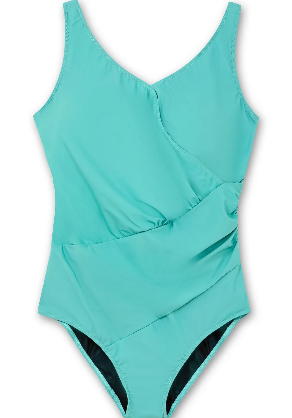 Bügelloser Badeanzug von feel good. Für den modischen Anspruch sorgt das Vorderteil in Wickeloptik, das durch geschickte Raffungen der Figur schmeichelt. Der tiefe, abgerundete Rückenausschnitt ergänzt den femininen Style.