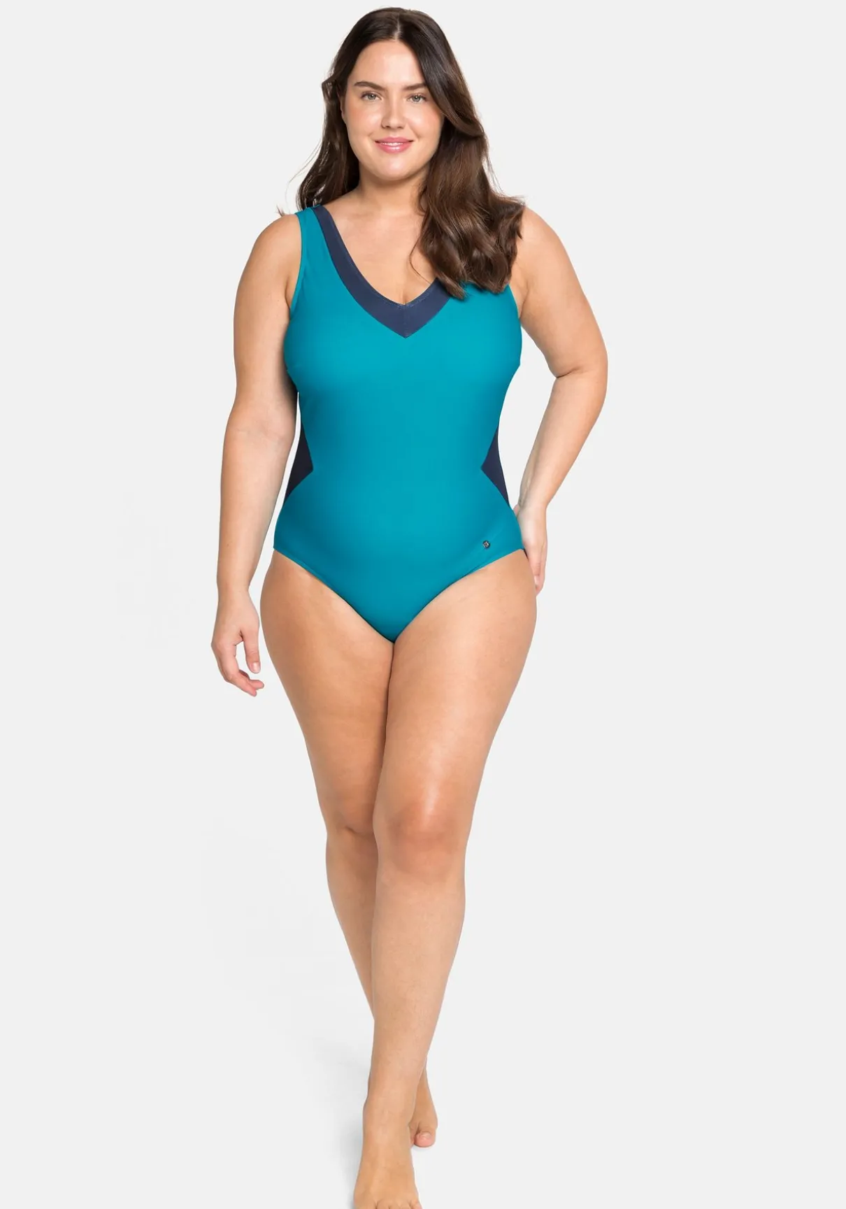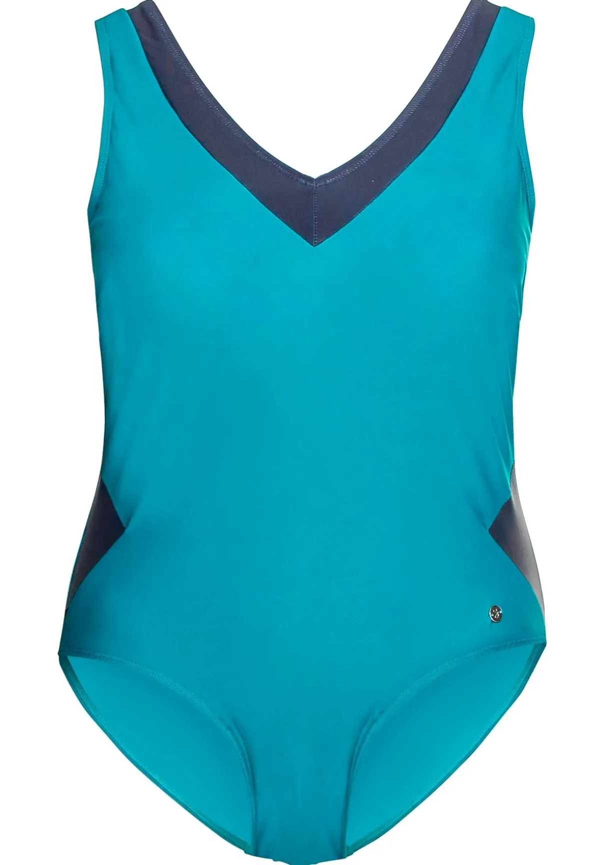 Badeanzug mit Shaping-Effekt. Die kontrastfarbenen Einsätze am Ausschnitt und an den Seiten geben dem Style eine sportive Note. Wattierte Softcups, ein Unterbrustgummi sowie die breiten Träger sorgen für hohen Tragekomfort und optimalen Halt.