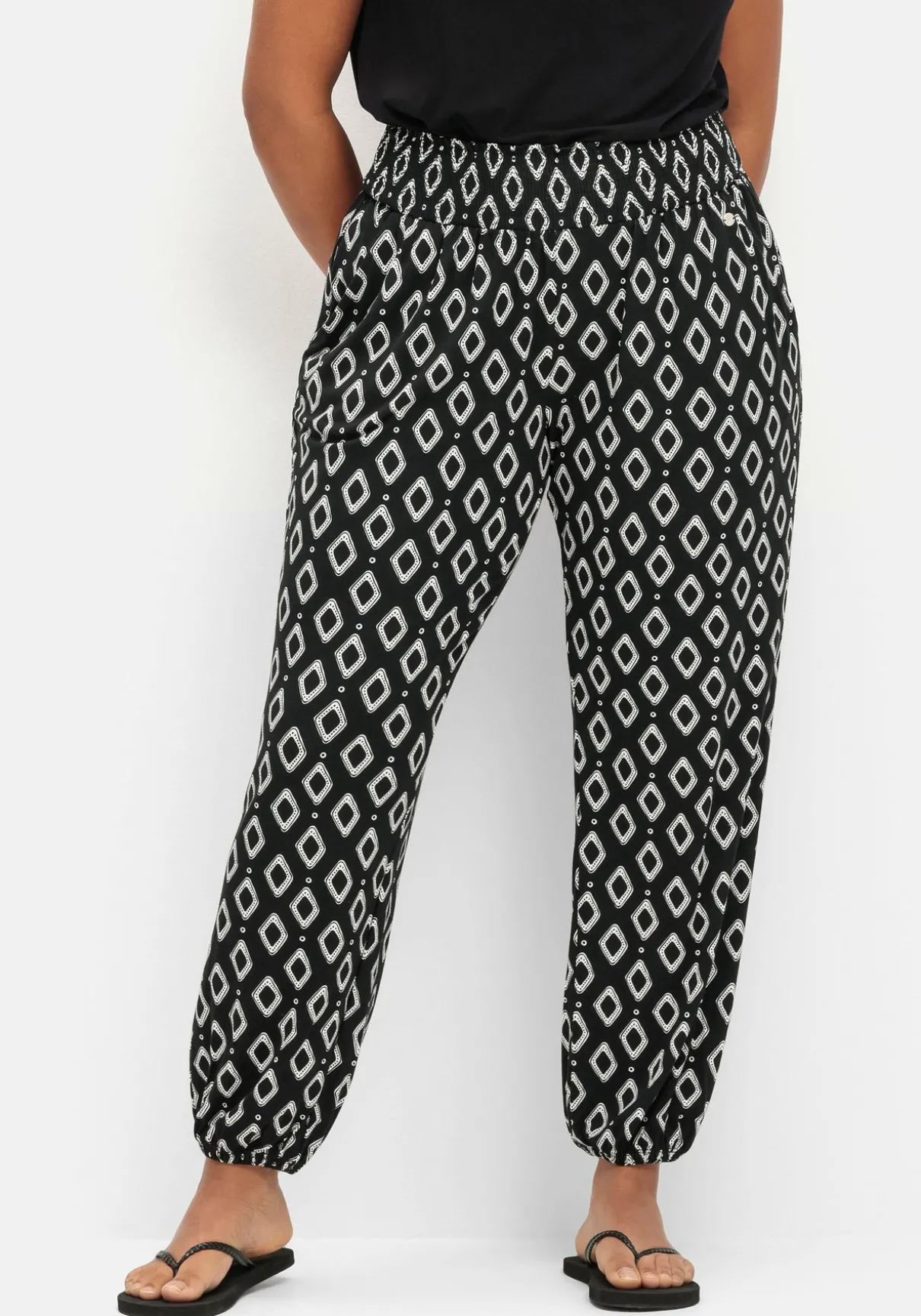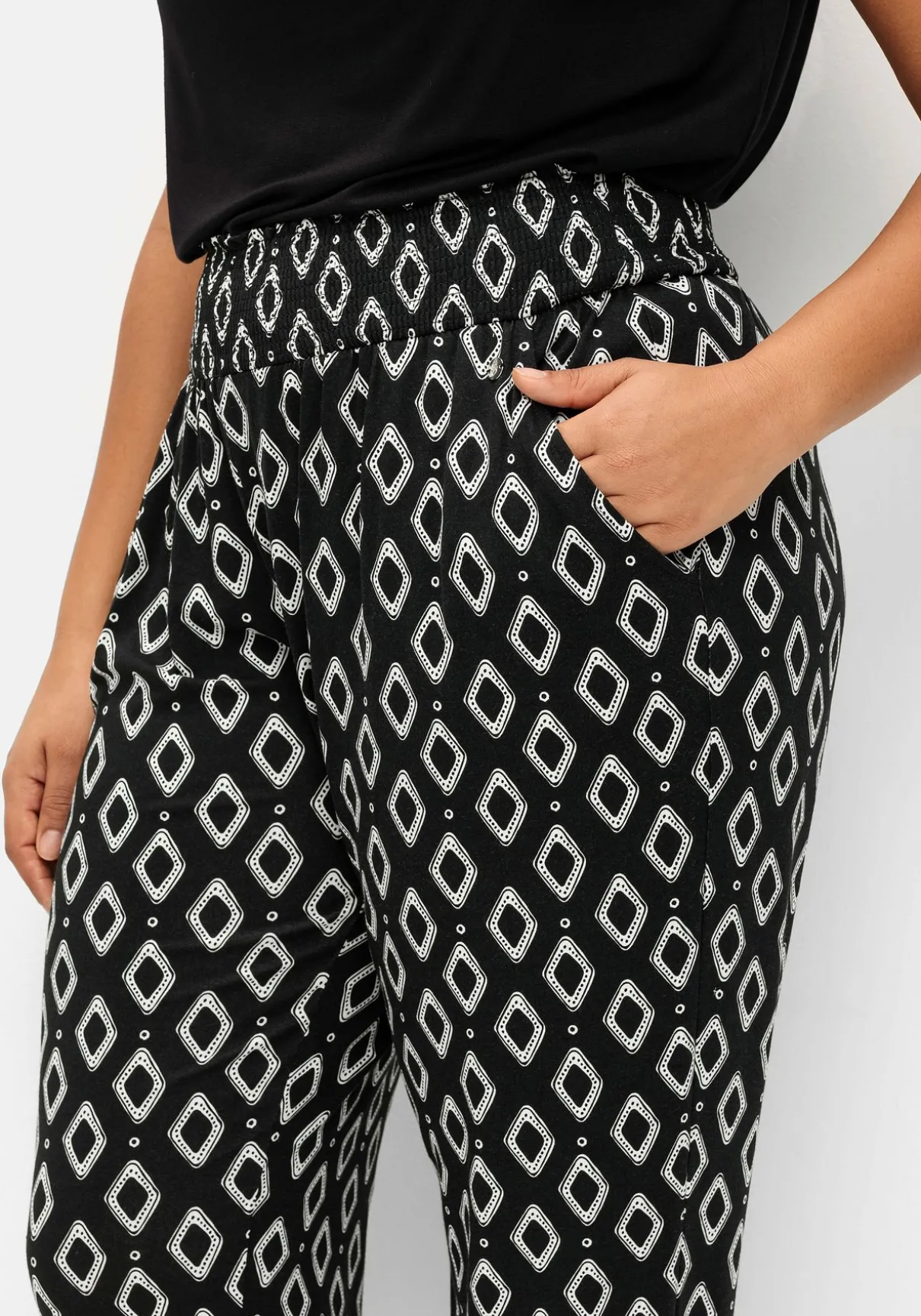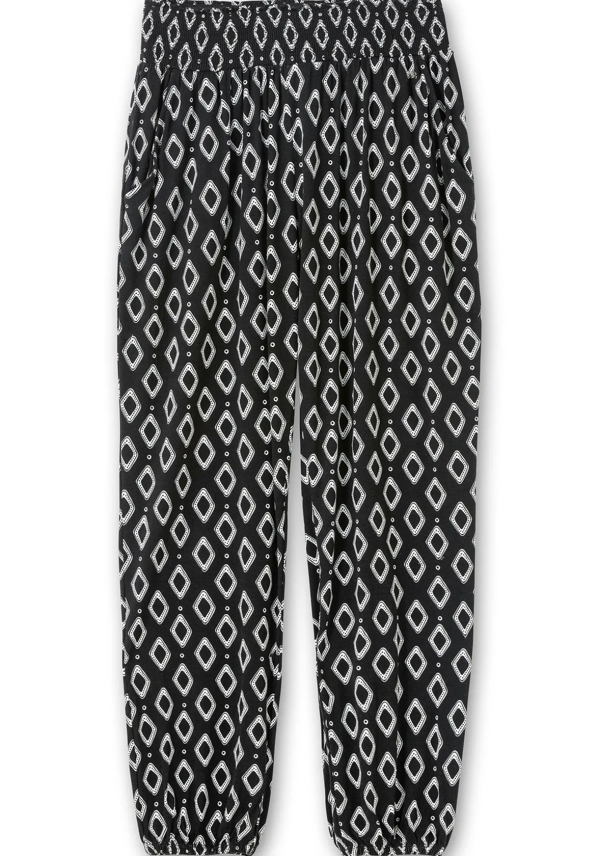 Allover bedruckte Jerseyhose in legerer Joggpants-Form – ideal für die City oder den Strand. Der breite Smokbund sowie elastische Beinabschlüsse geben dem Look eine sportive Optik. Praktische Eingrifftaschen unterstreichen den lässigen Style.