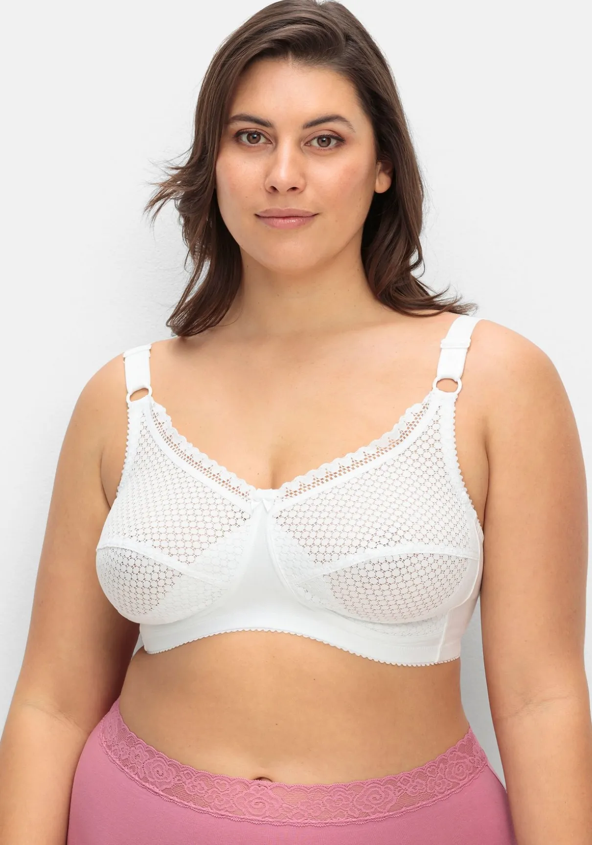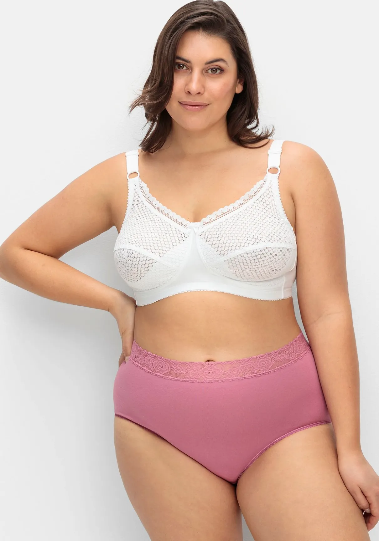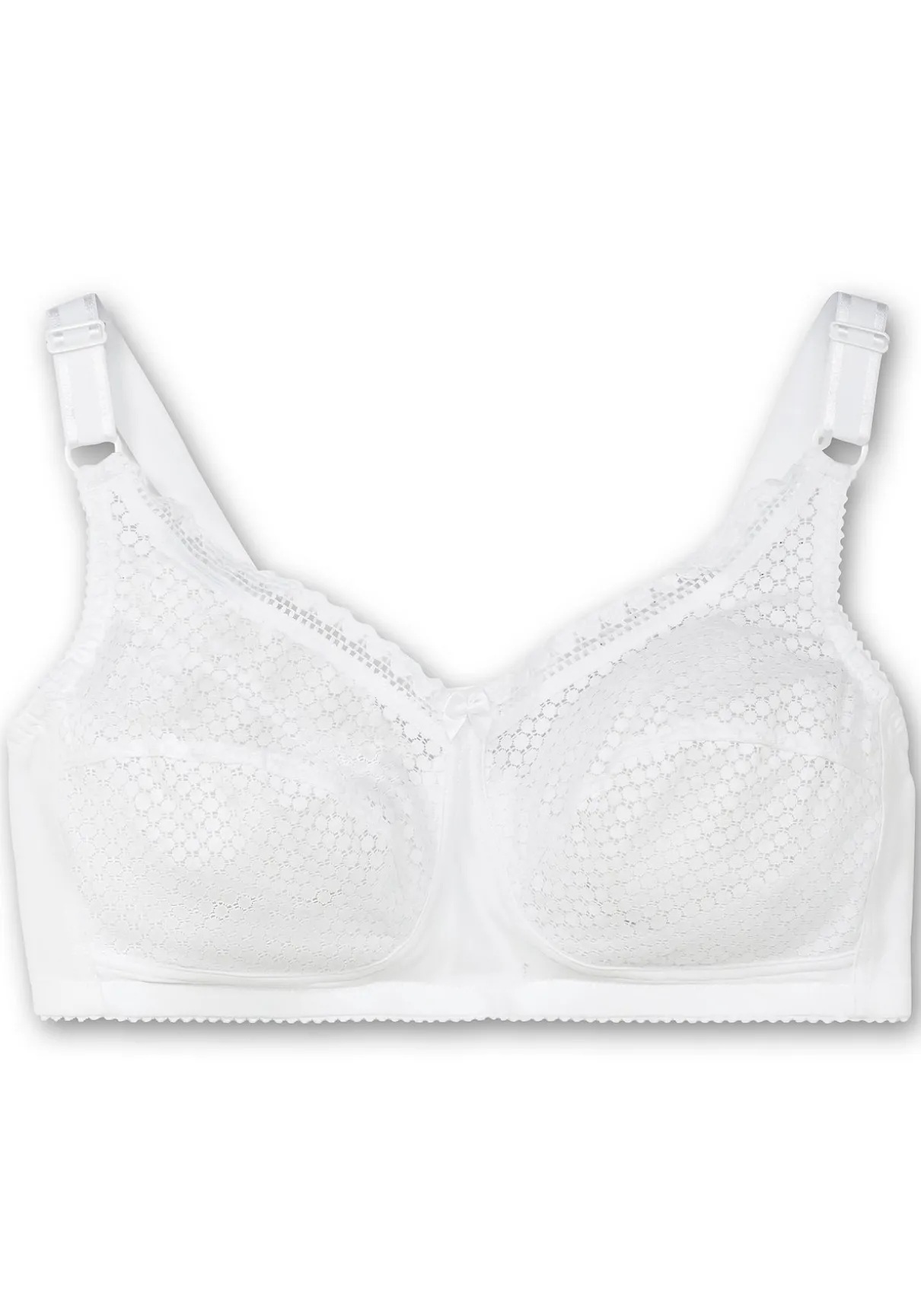 Bügelloser BH von Miss Mary of Sweden. Feminin und komfortabel zugleich zeigen sich die zweigeteilt gearbeiteten Cups aus stabiler Spitze. Auch die Untercups mit zusätzlicher Stütze geben zuverlässigen Halt.