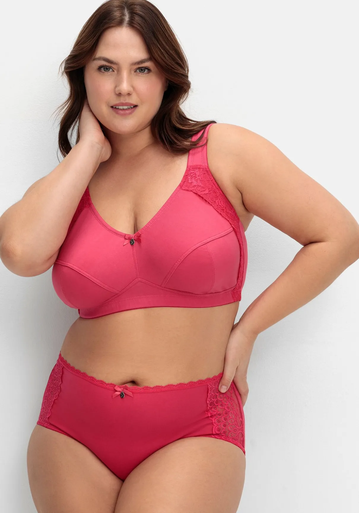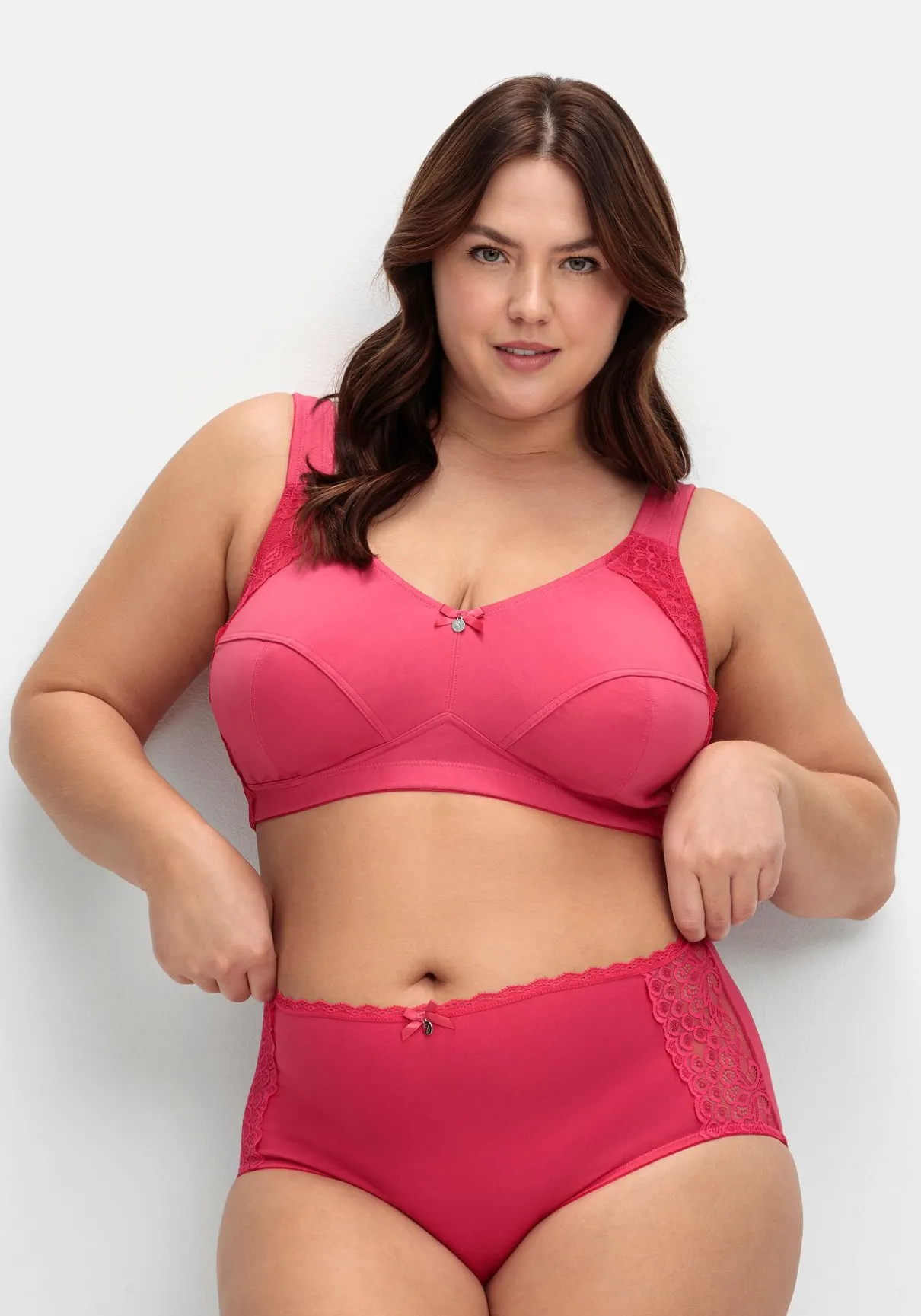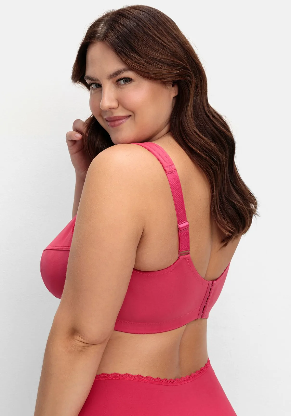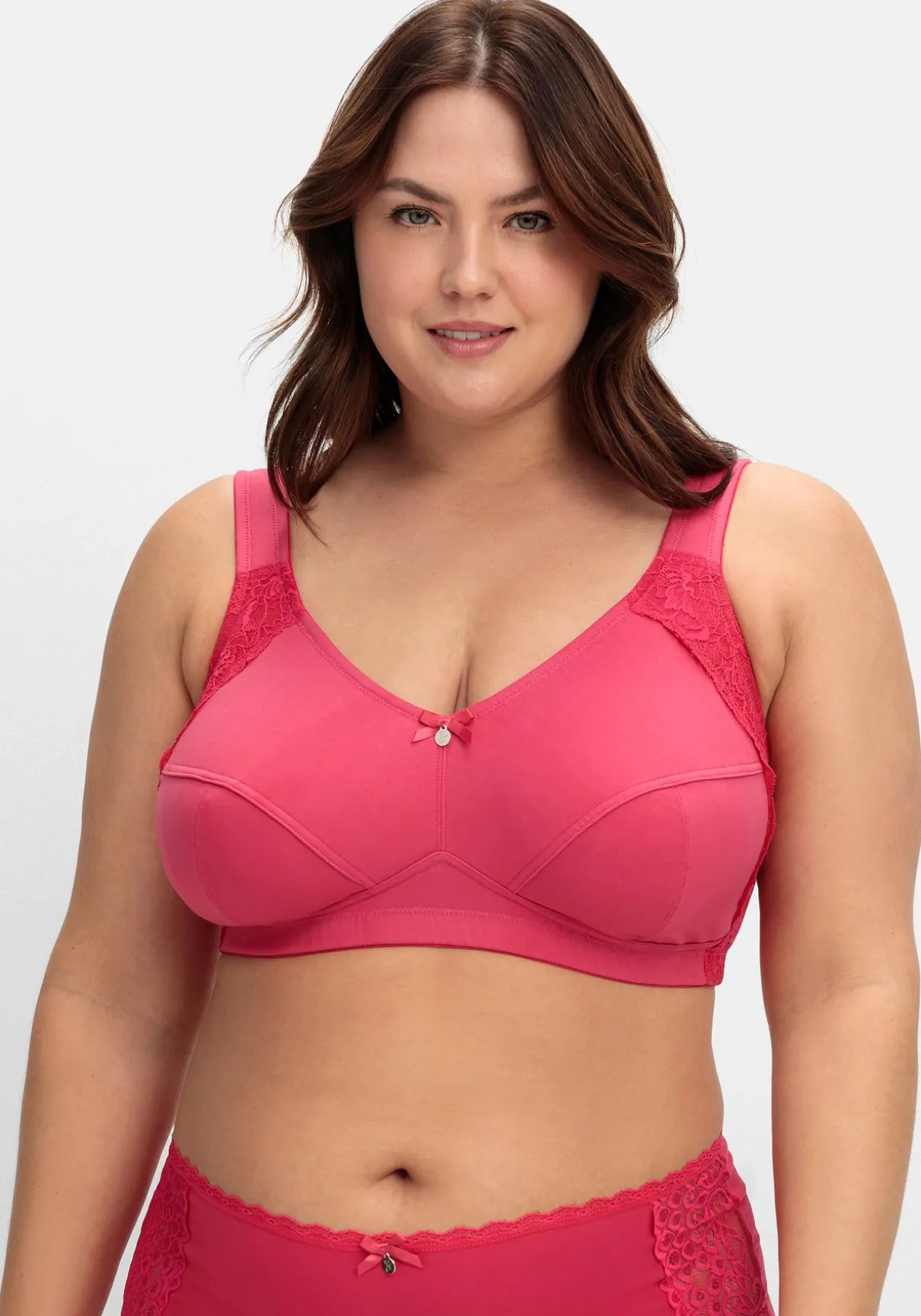 BH in bügelloser Form. Für eine romantische Note sorgt der seitliche Spitzenbesatz. Besonders tragefreundlich sind die elastischen, längenverstellbaren Träger gearbeitet, die dank der Wattierung nicht einschneiden. Für einen optimalen Sitz sorgt der eingearbeitete Unterbrustgummi, auch die abdeckende Schnittform gibt zuverlässigen Halt und Komfort. Mit weitenverstellbarem Rückenverschluss.