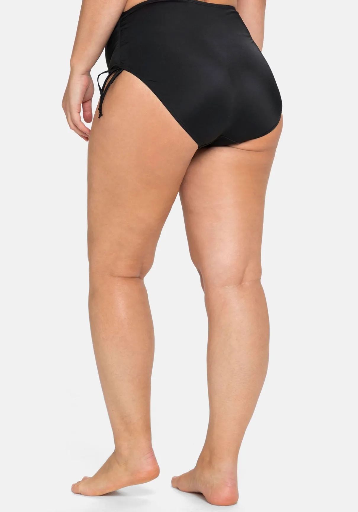 Bikinihose aus Microfaser. Der vorn eingearbeitete Shaping-Einsatz schmeichelt der Bauchpartie. Besonderes Detail ist die höher gearbeitete Seitennaht, die mit einem Band feminin gerafft werden kann. Dank des Mix & Match-Charakters lässt sich diese Hose wunderbar mit anderen Teilen aus der sheego Badekollektion kombinieren.